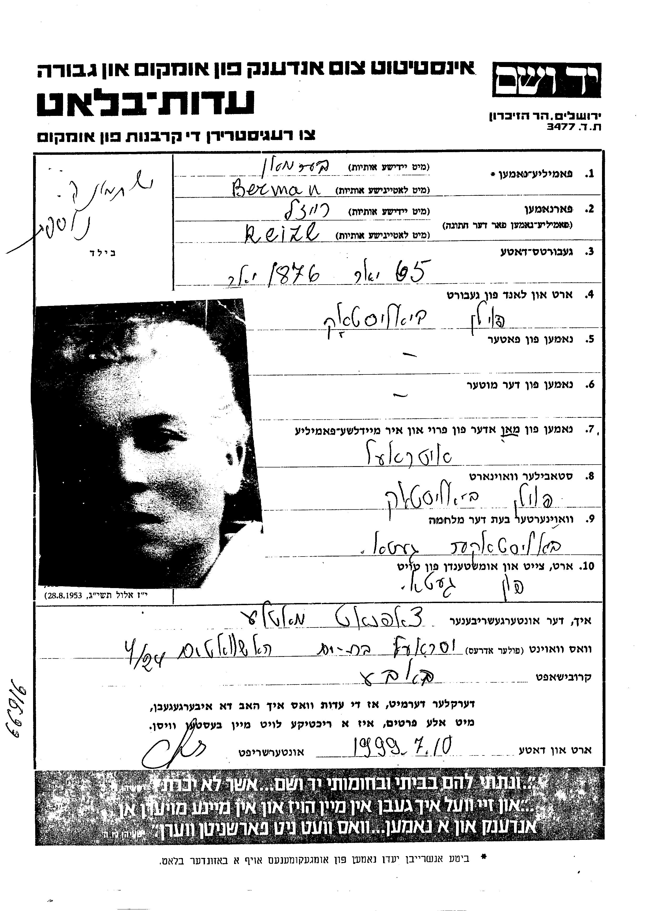Berman | Reizl | 1876 | Bialystok, Polen | Gedenkblatt |