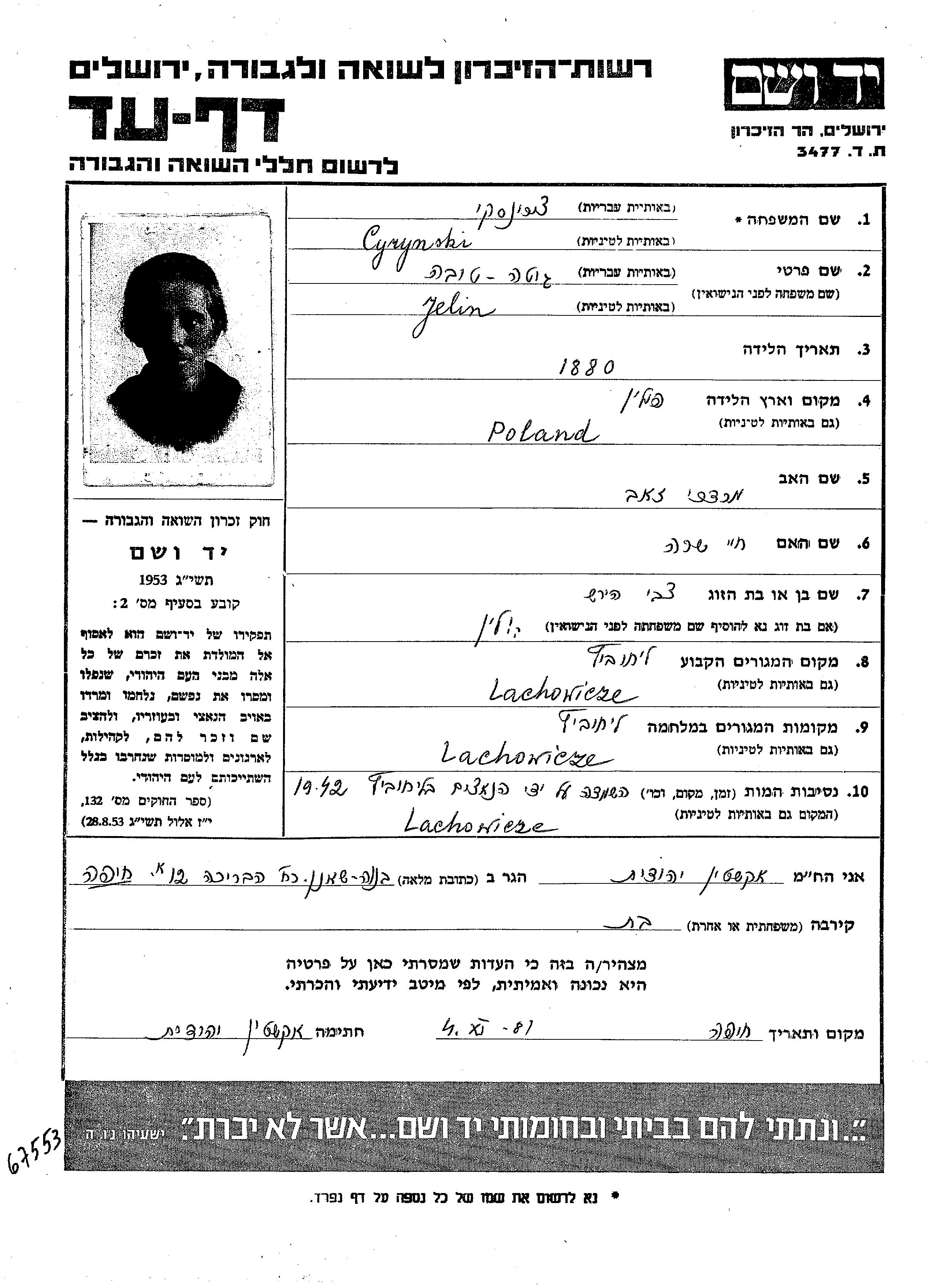 Jelin | Gita | 1880 | Lachowicze, Polen | Gedenkblatt |