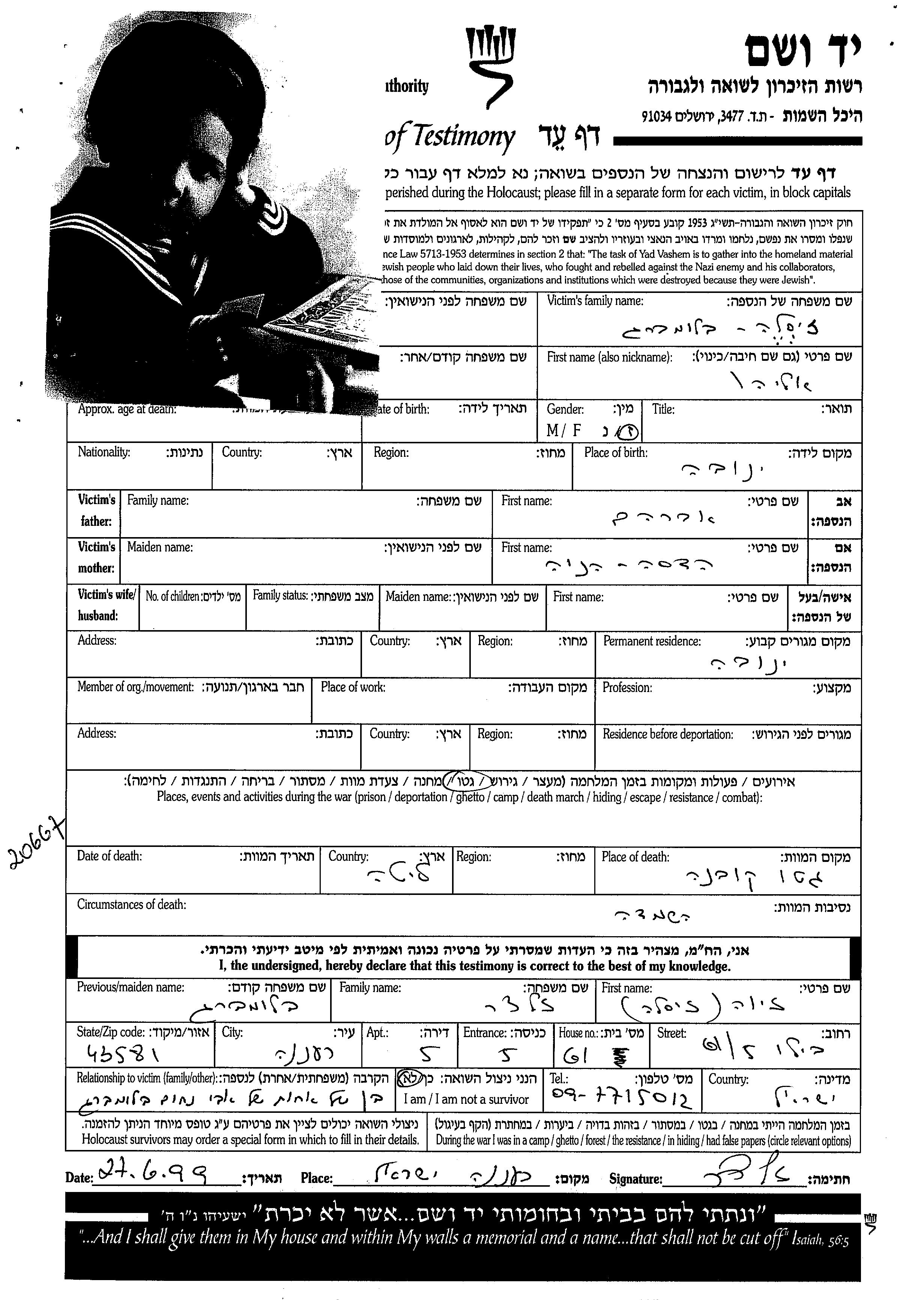 Eliahu wurde in der Schoah ermordet. Todesort: unbekannter Ort.