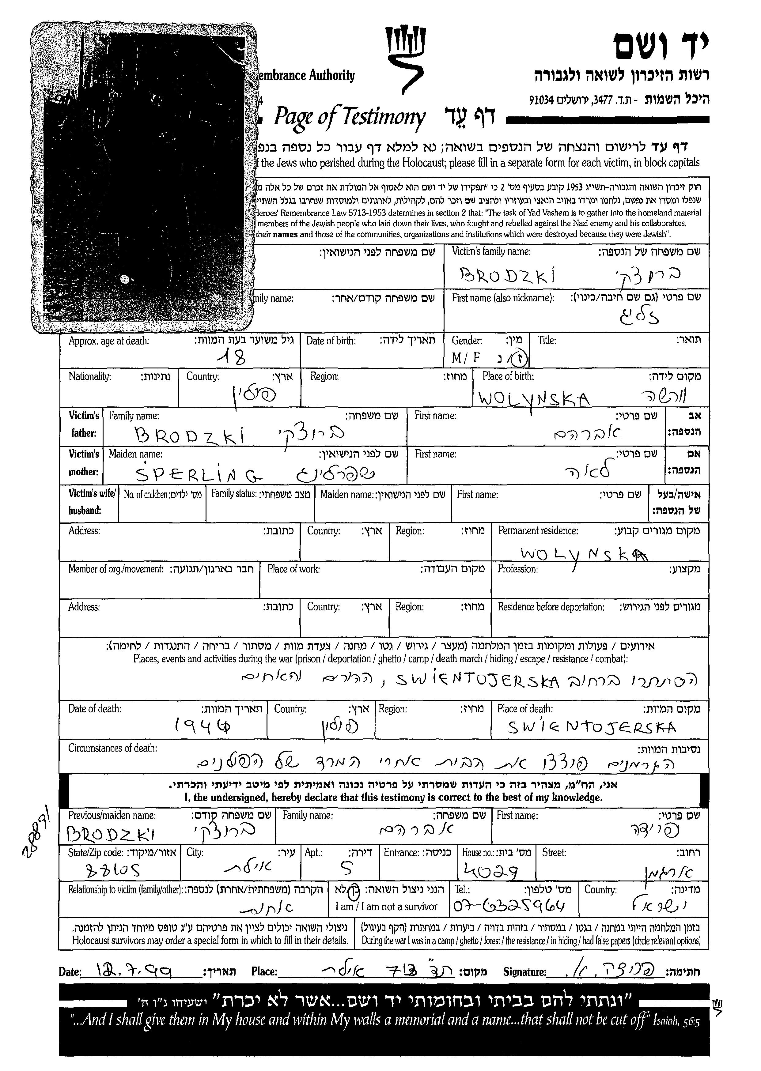 Zelig Brodzki wurde im Jahr 1921 in Warszawa, Polen geboren. Vor dem Zweiten Weltkrieg lebte er in Warszawa, Polen.