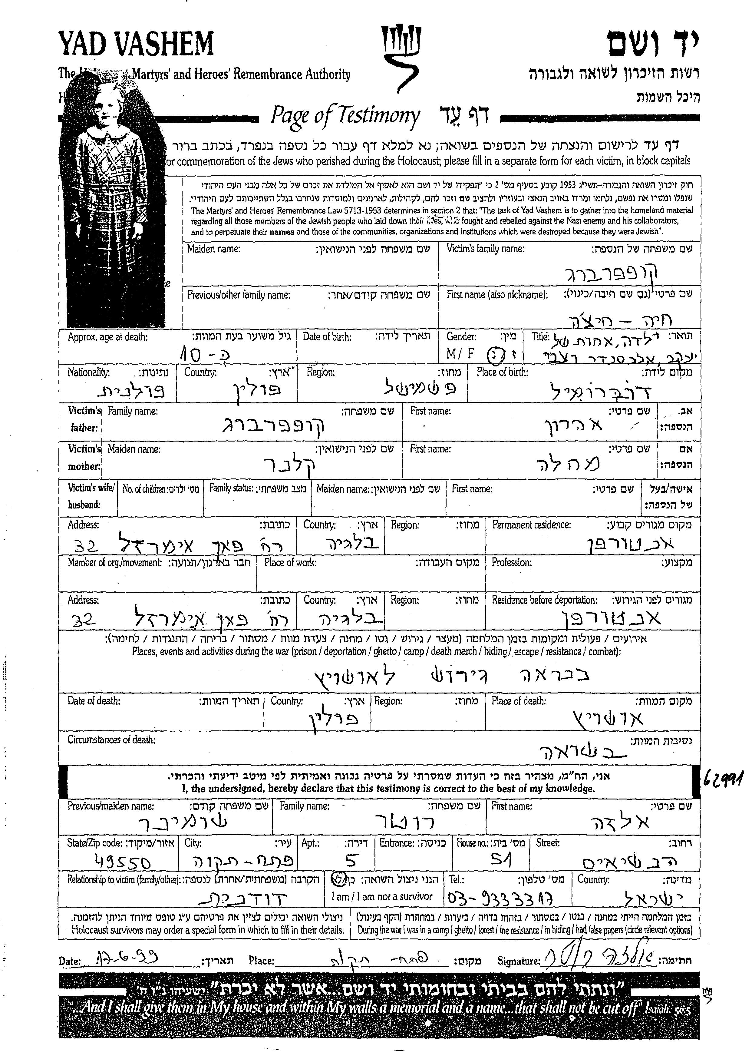 Khaia wurde in der Schoah ermordet. Todesort: Auschwitz, Polen.