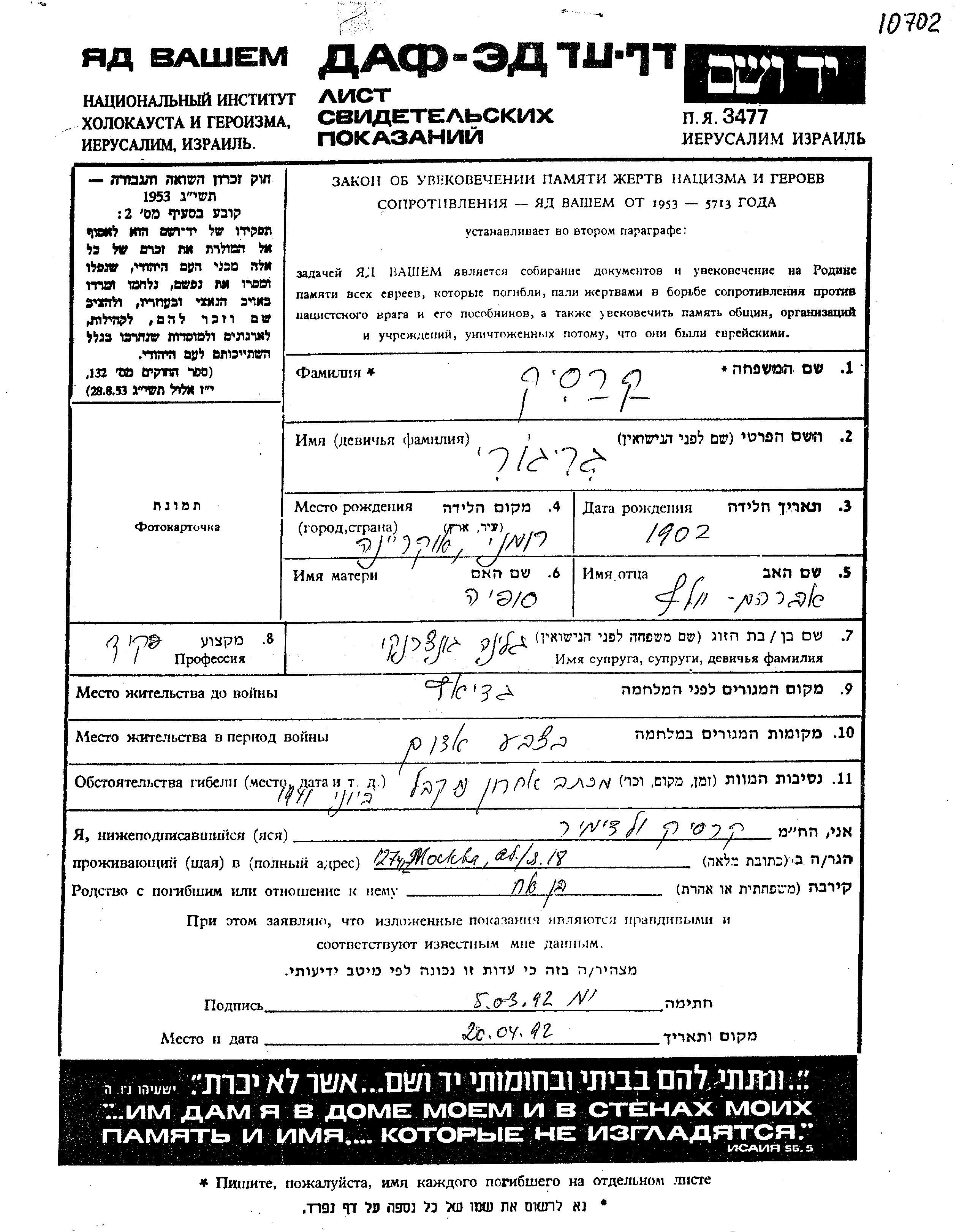 | Karasik | Grigori | 1902 | Gadyach, Ukraine (UdSSR) | Gedenkblatt |