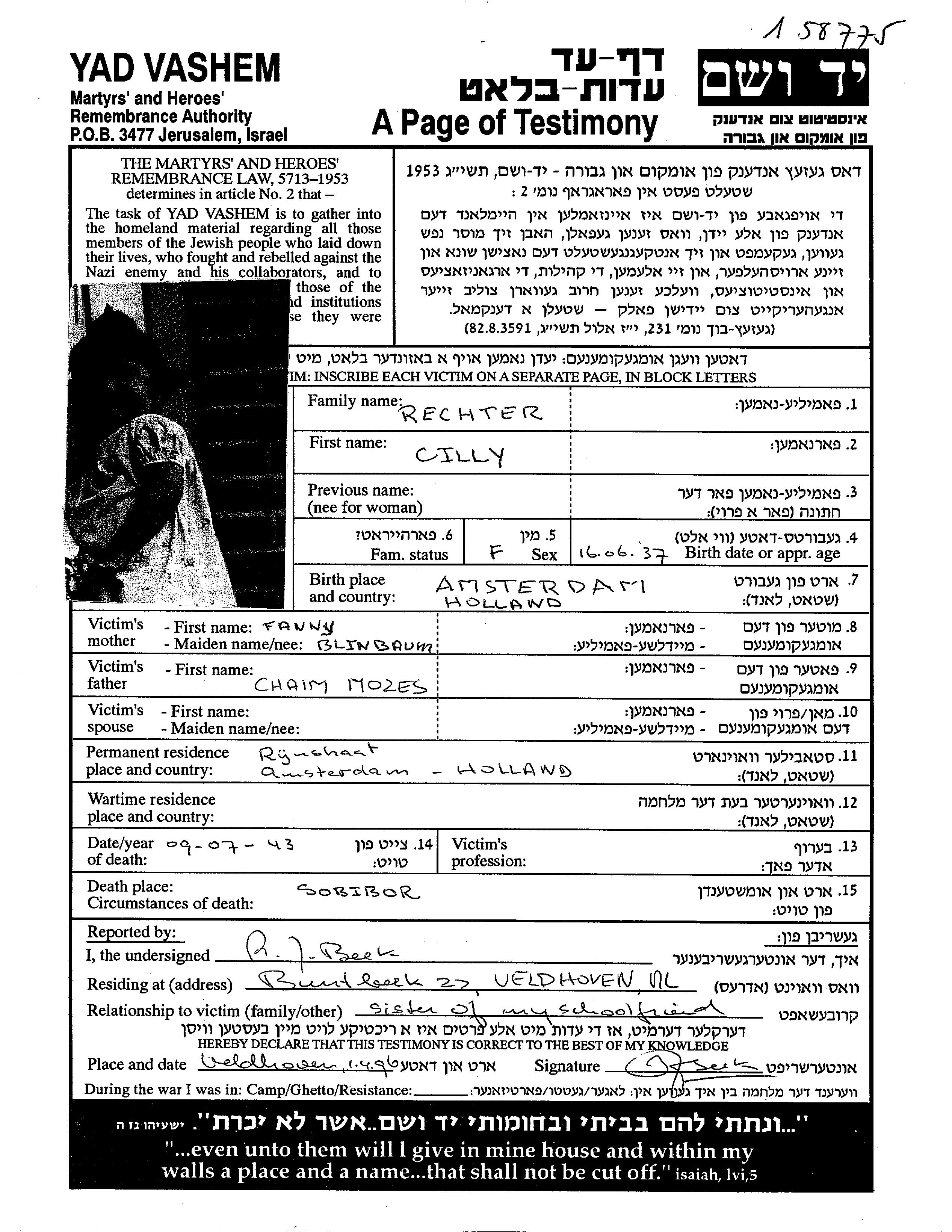Cilly wurde in der Schoah ermordet. Todesort: Sobibor, Polen im Jahr 09/07/1943.