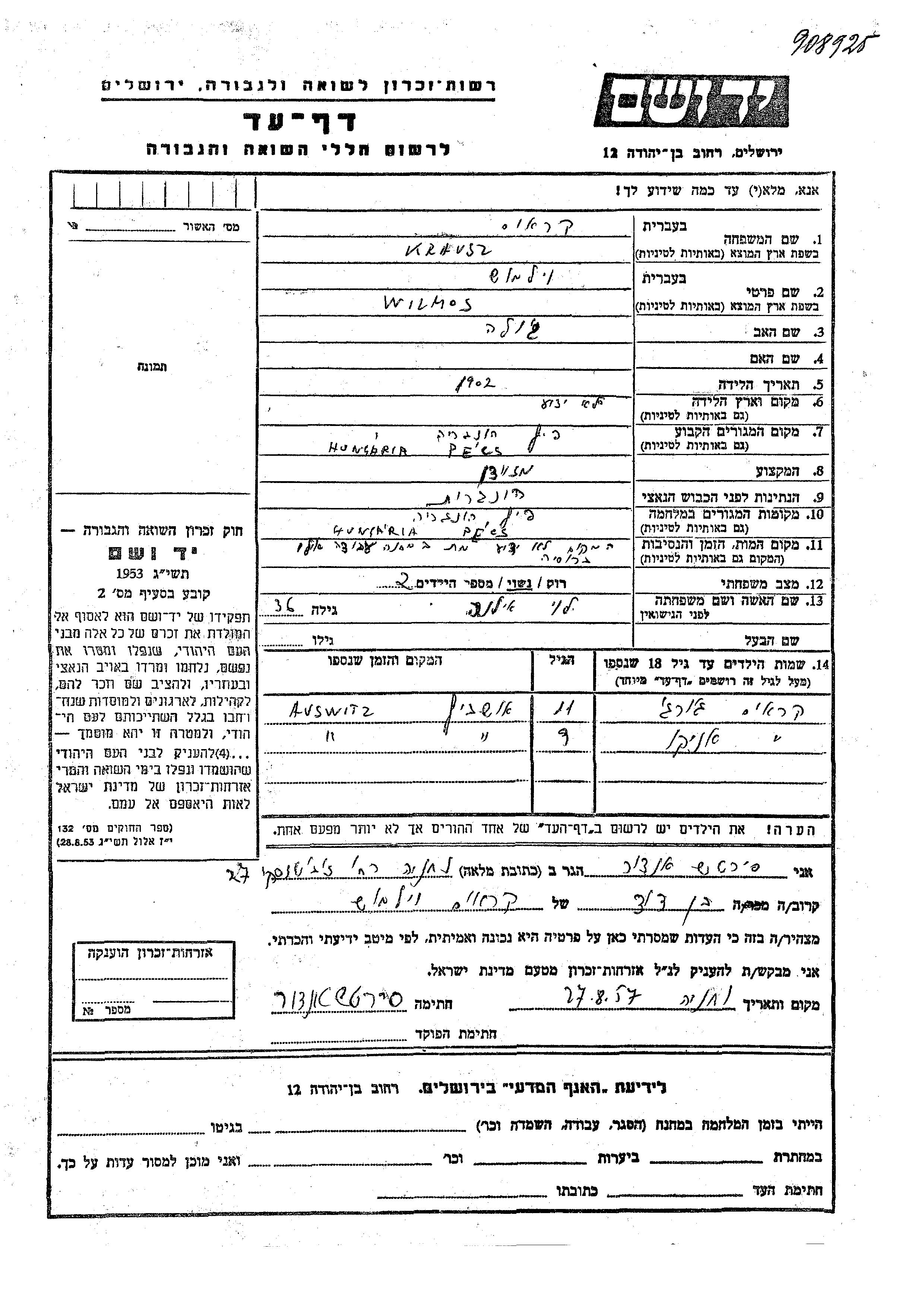 Krausz | Wilmos | 1902 | Pecs, Ungarn | Gedenkblatt |