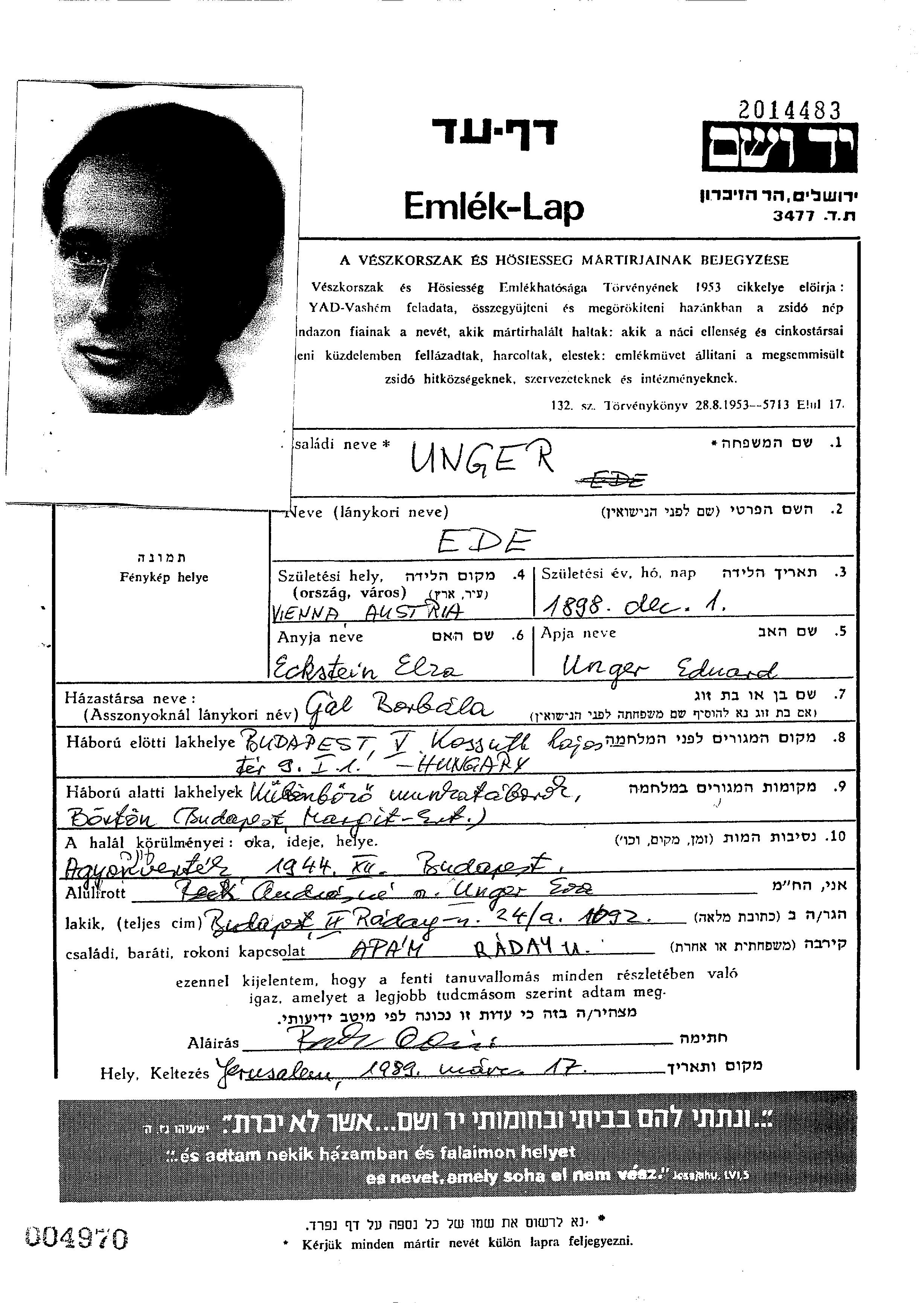 Ede wurde in der Schoah ermordet. Todesort: Budapest, Ungarn im Jahr 1944.