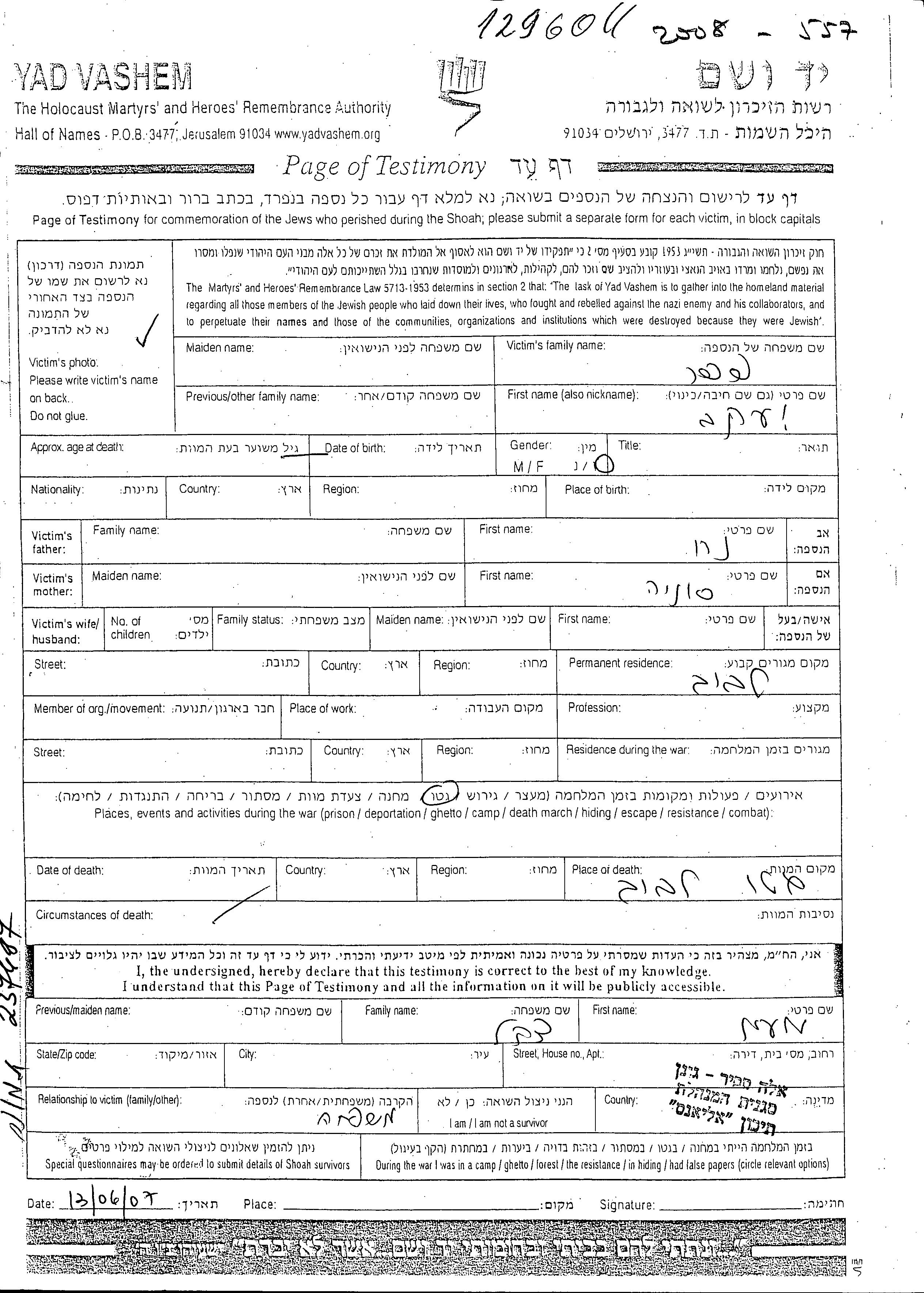 Yaakov wurde in der Schoah ermordet. Todesort: Lwow, Polen.
