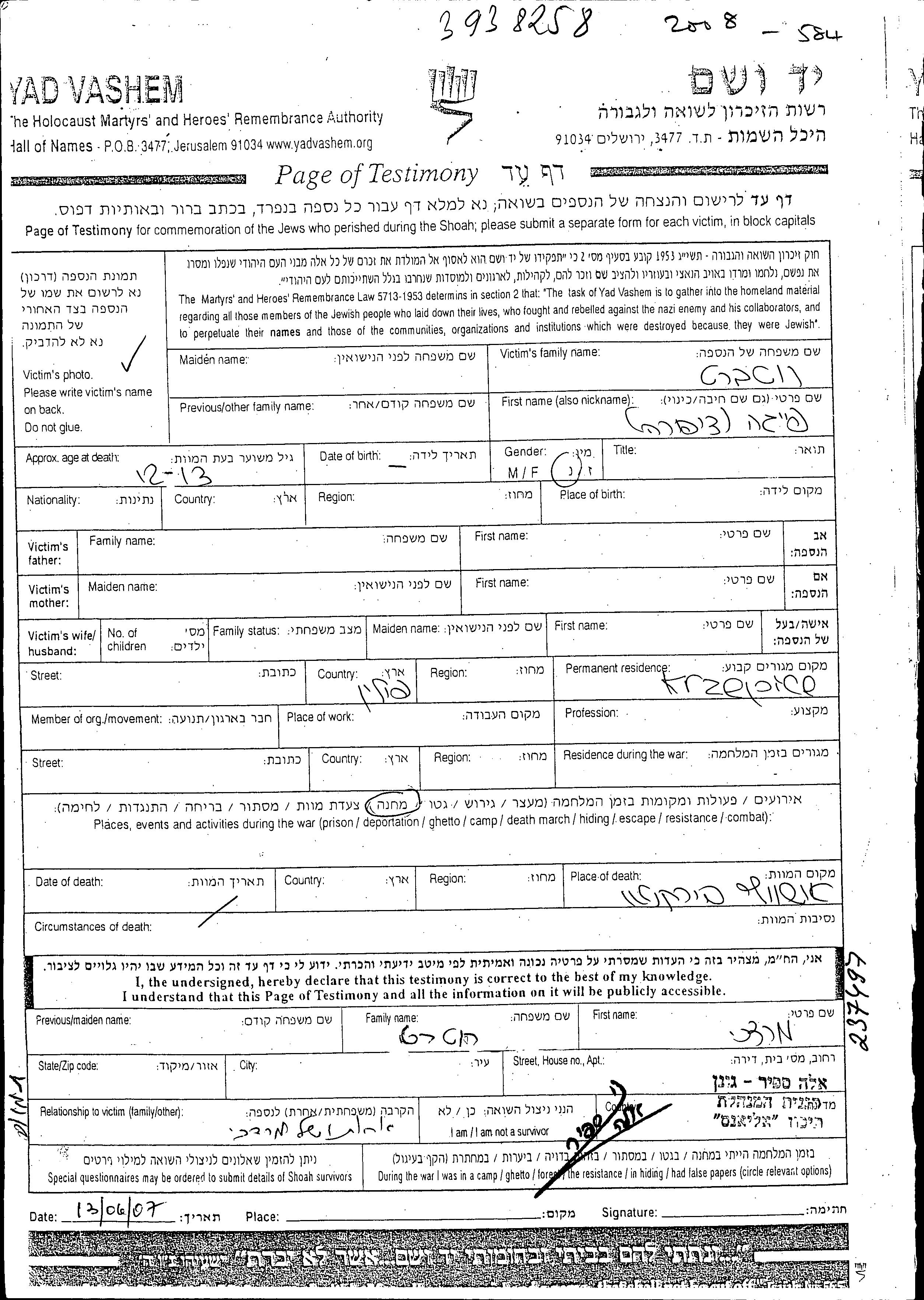 Feiga Tzipora wurde in der Schoah ermordet. Todesort: Birkenau, Polen.