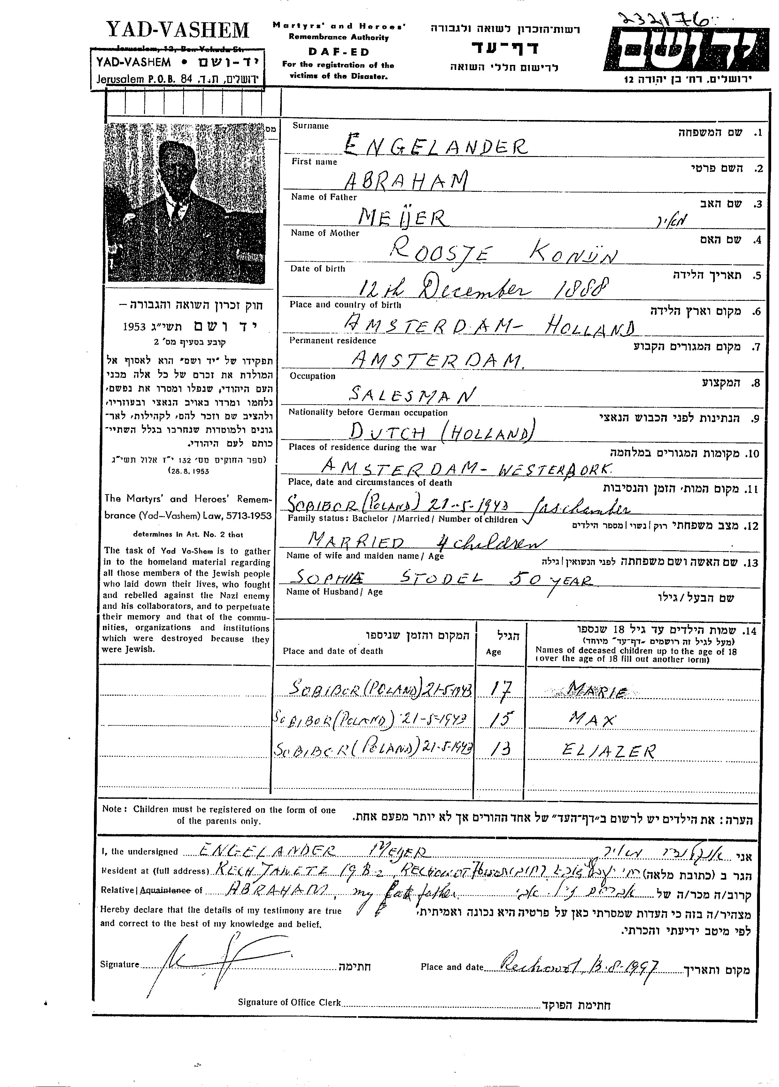 Marie Engelander wurde im Jahr 1926 in Niederlande geboren. Vor dem Zweiten Weltkrieg lebte sie in Niederlande.