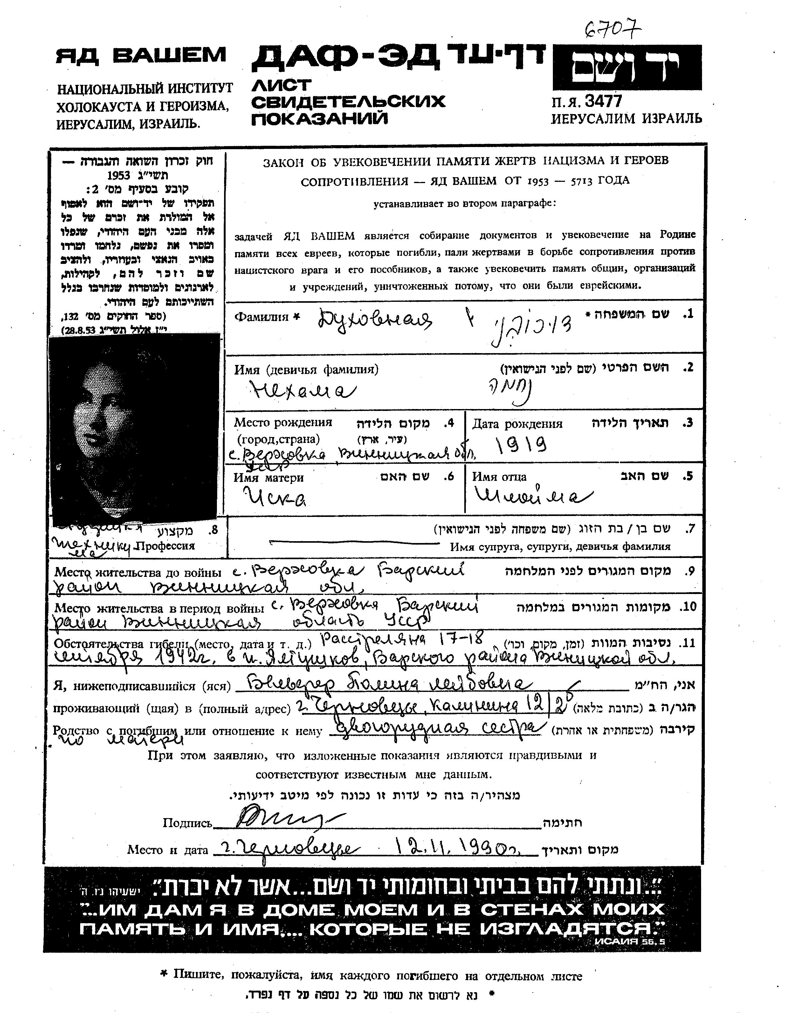 Nekhama wurde in der Schoah ermordet. Todesort: Yaltushkov, Ukraine (UdSSR) im Jahr 17/09/1942.