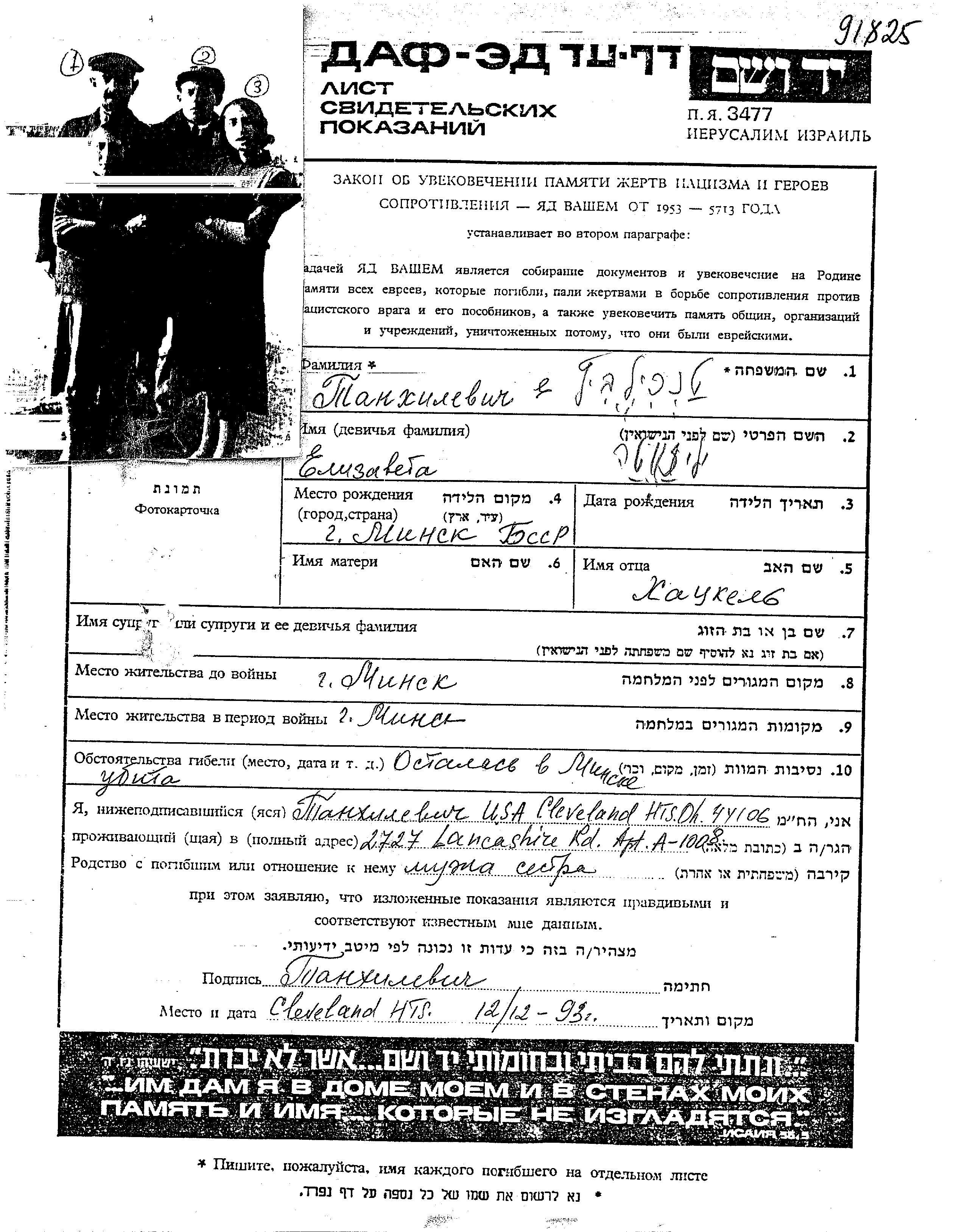 Yelizaveta Tankhilevich wurde in Minsk, Weißrussland (UdSSR) geboren. Vor dem Zweiten Weltkrieg lebte sie in Minsk, Weißrussland (UdSSR).