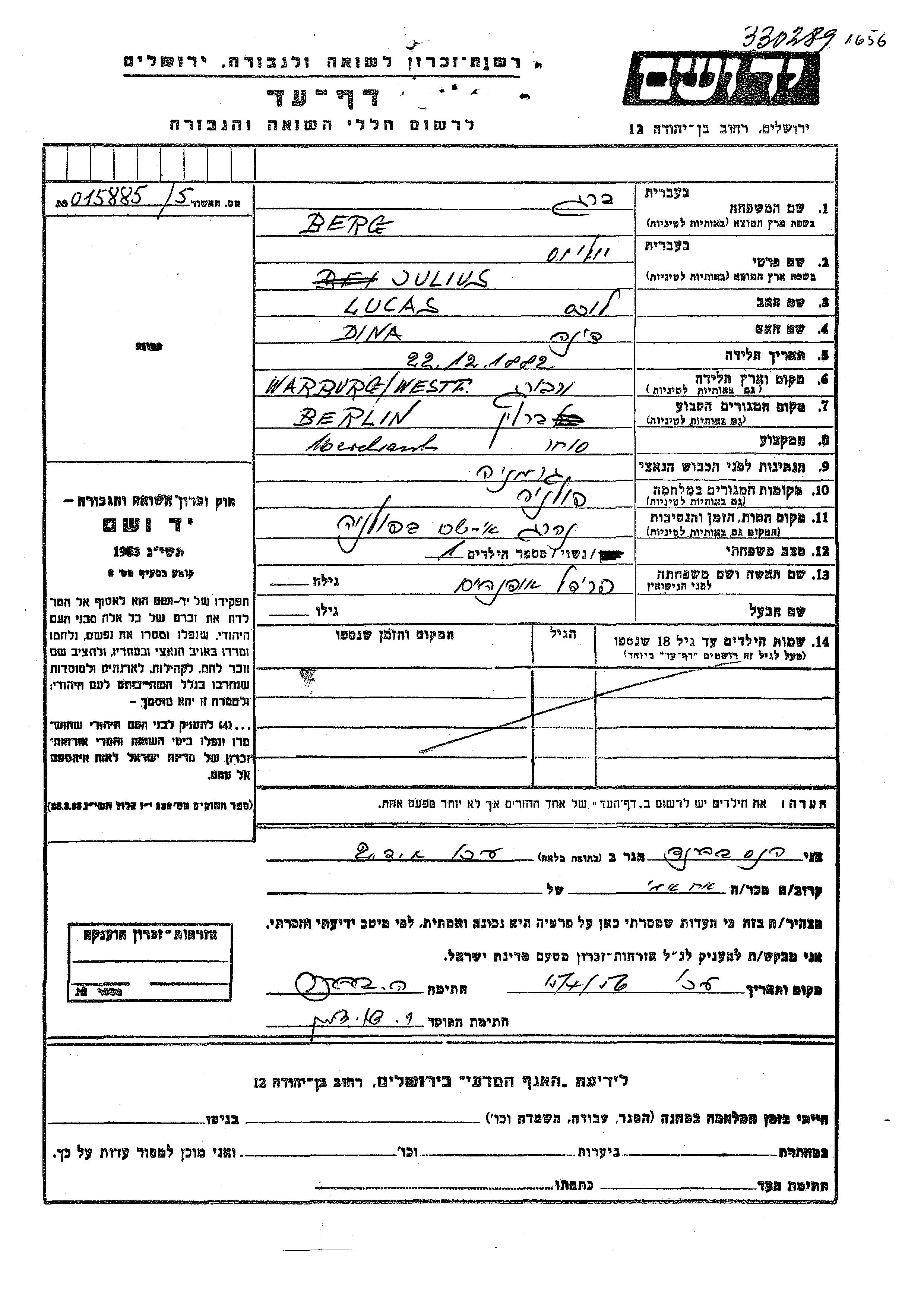 Julius Berg wurde im Jahr 1882 in Warburg, Deutsches Reich geboren. Er war Kaufmann/-frau. Vor dem Zweiten Weltkrieg lebte er in Berlin, Deutsches Reich.