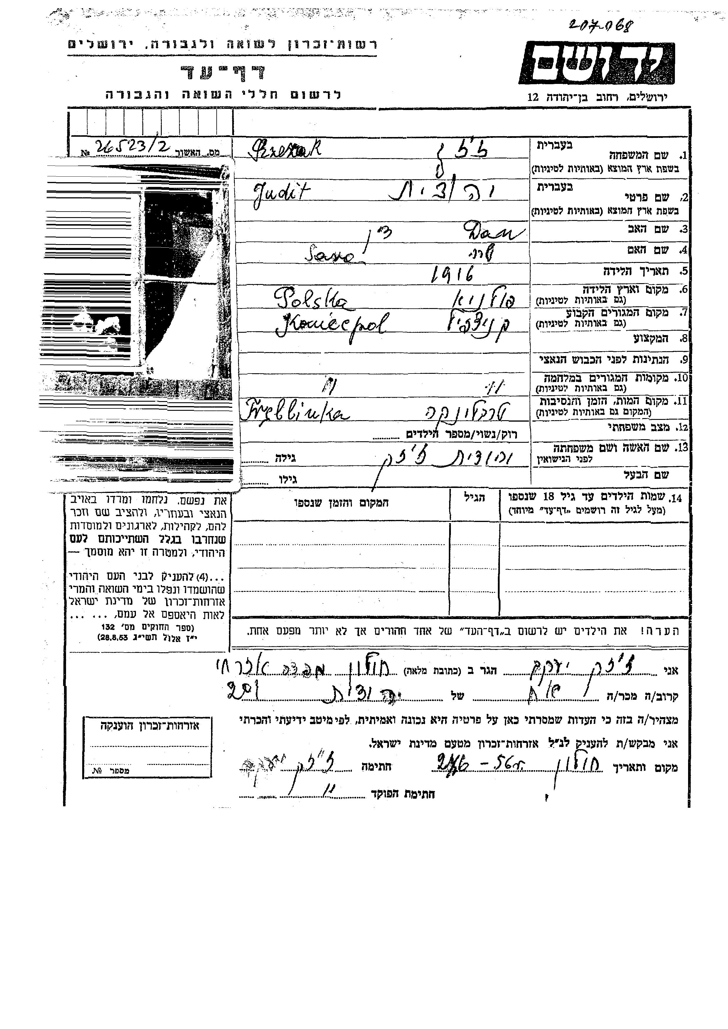 Judit wurde in der Schoah ermordet. Todesort: Treblinka, Polen.