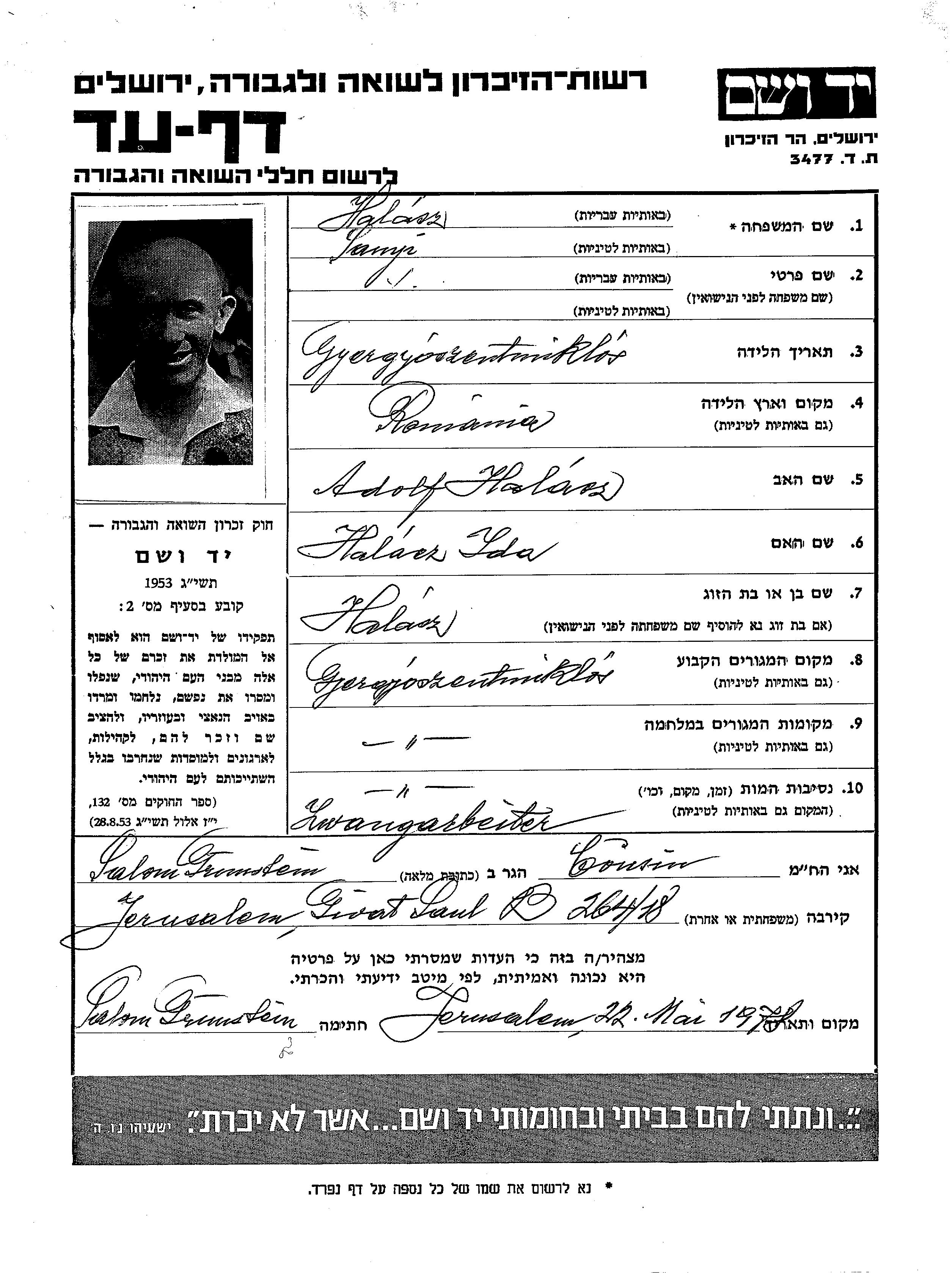 Janji Halasz wurde in Rumänien geboren. Vor dem Zweiten Weltkrieg lebte er in Gheorgheni, Rumänien.