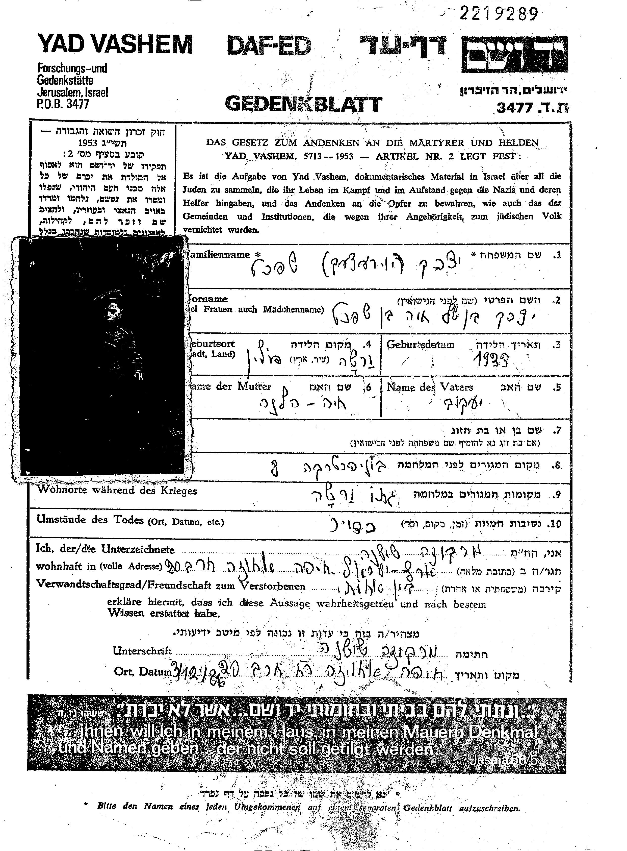 Yitzkhak Yorechek wurde in der Schoah ermordet. Todesort: Warszawa, Polen.