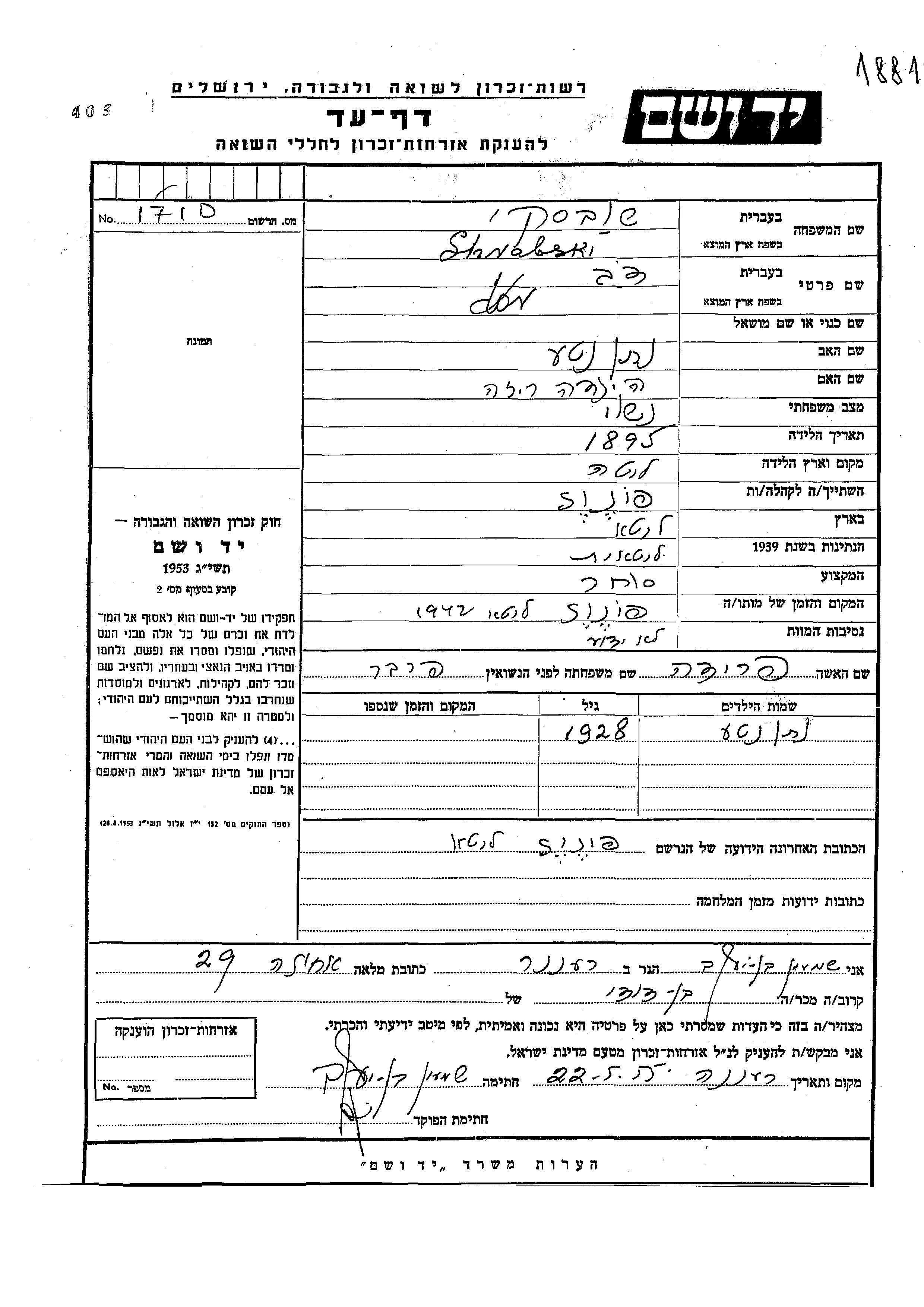 Dov wurde in der Schoah ermordet. Todesort: Panevezys, Litauen im Jahr 1942.