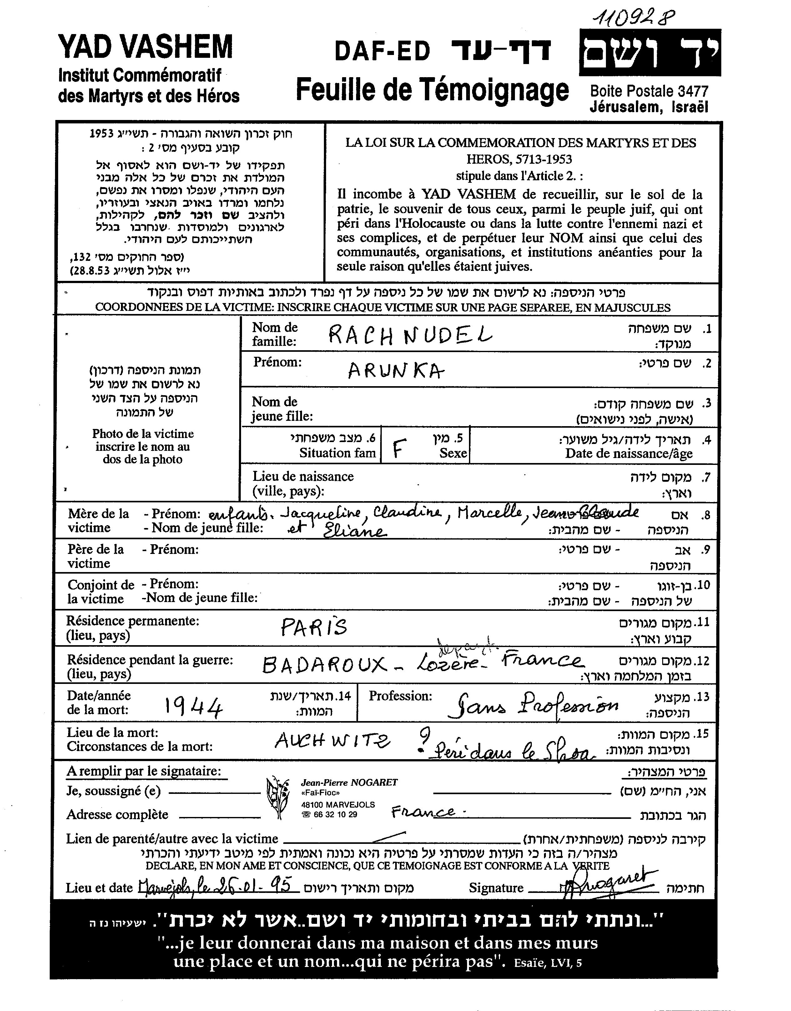 Arunka Rachnudel. Vor dem Zweiten Weltkrieg lebte er in Paris, Frankreich.