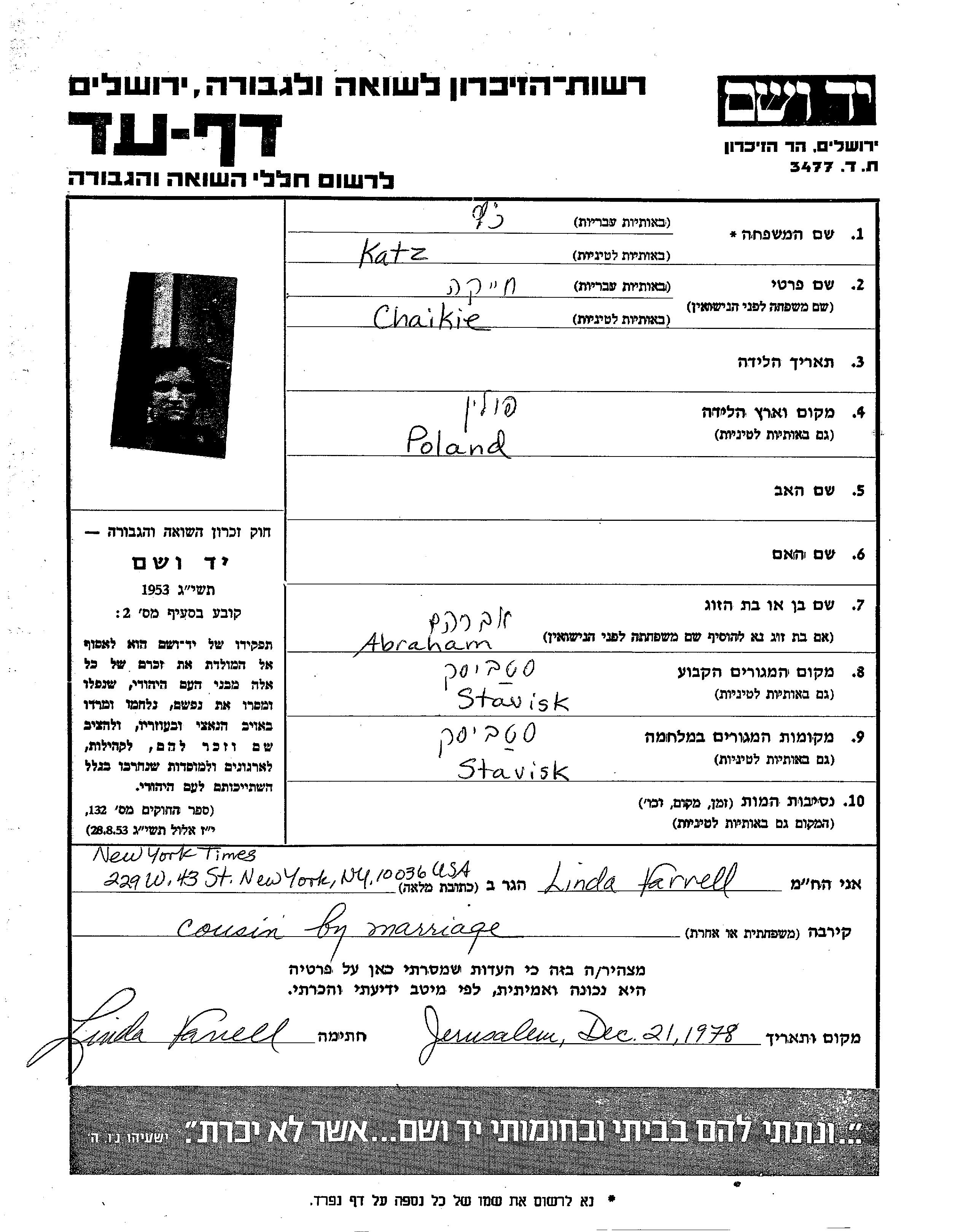 Chaikie Katz wurde in Polen geboren. Vor dem Zweiten Weltkrieg lebte sie in Stawiski, Polen.