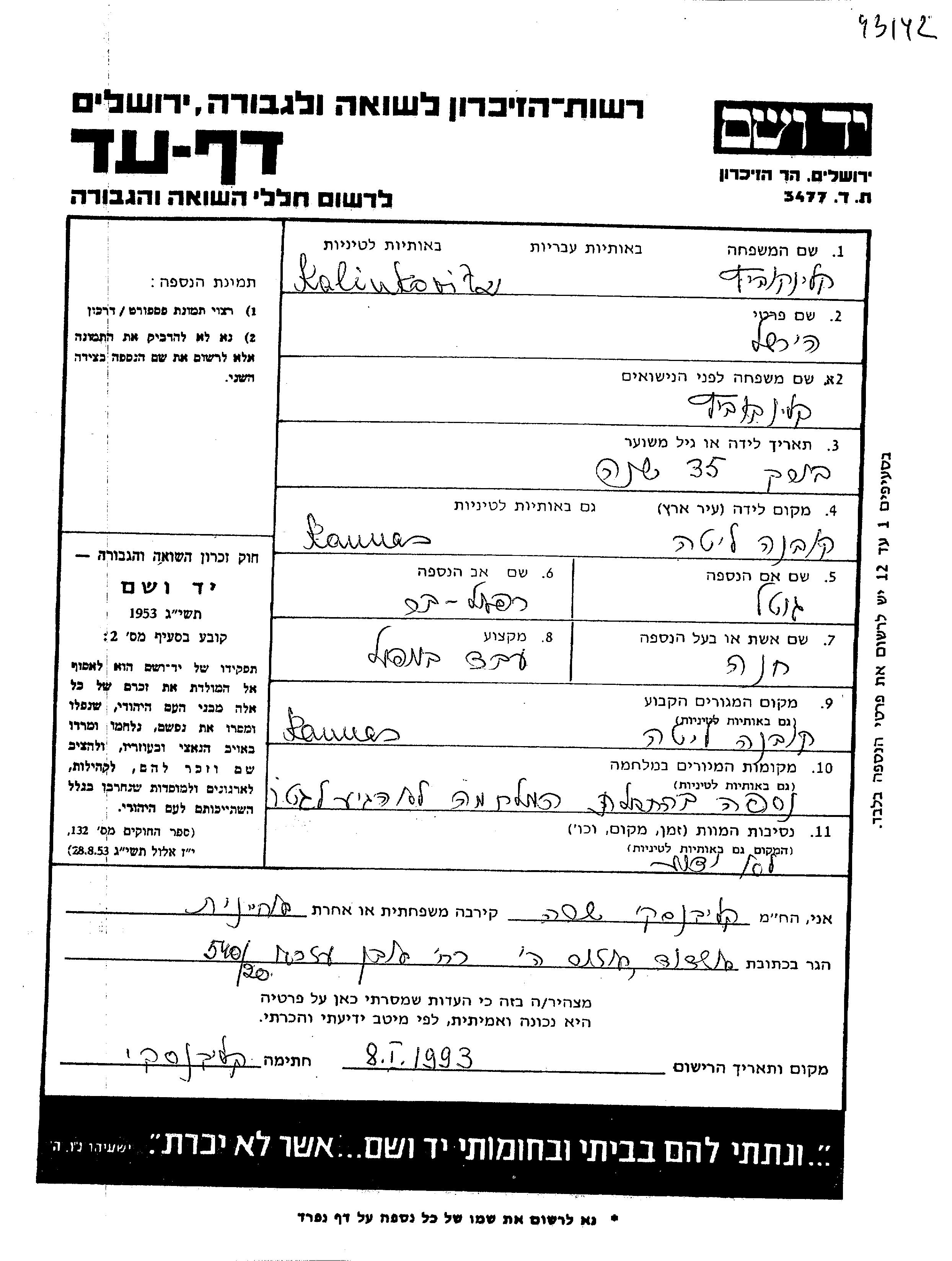 Hirshl Klinkovitz wurde in Kowno, Litauen geboren. Er war der Sohn von Rafael Ber und Gutl, geb. Scherak Shrek. Er war Fabrikarbeiter/in und mit Khana Verheiratet. Vor dem Zweiten Weltkrieg lebte er in Kowno, Litauen. Während des Krieges war er in Kowno, Litauen.