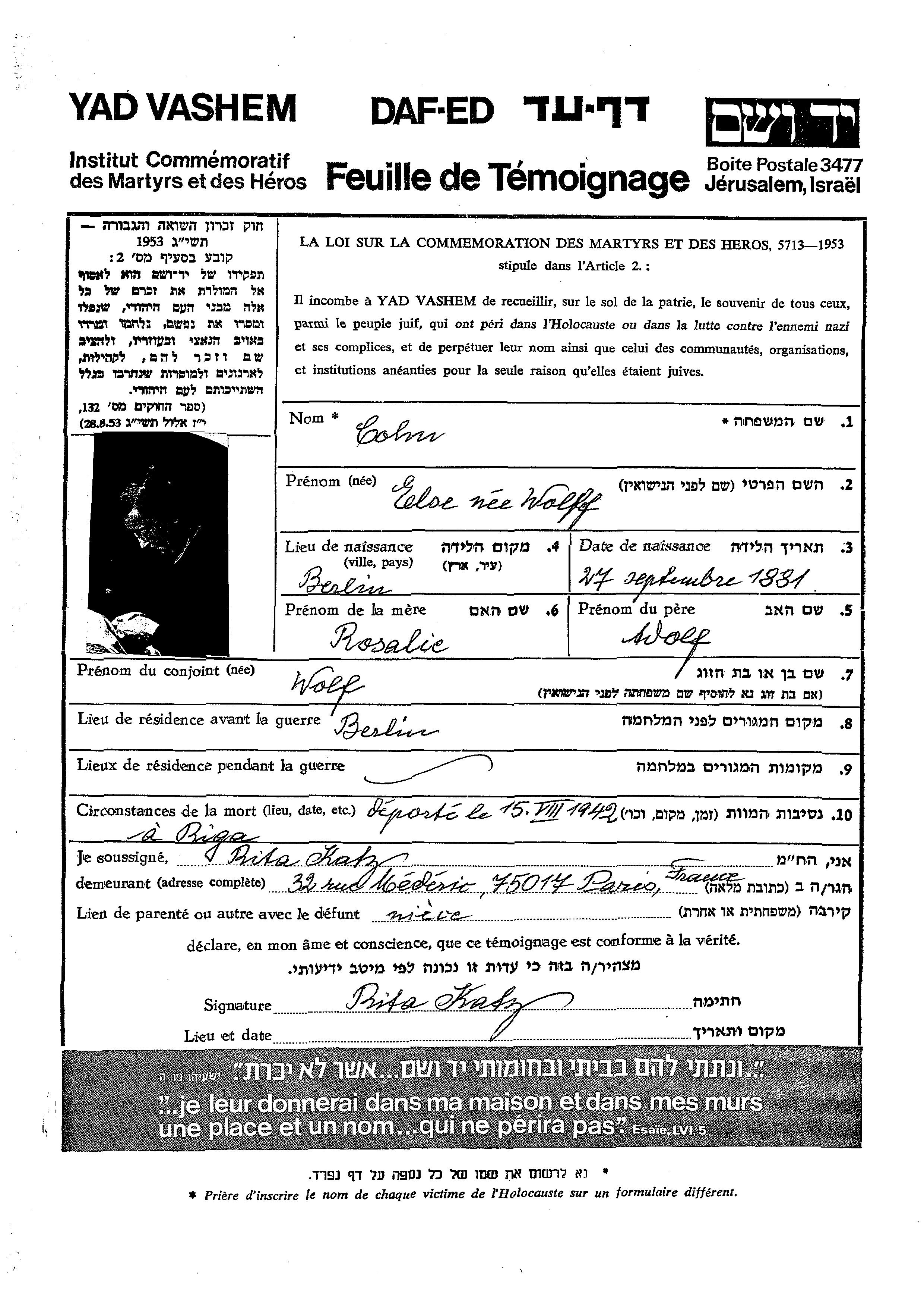 Else wurde in der Schoah ermordet. Todesort: unbekannter Ort im Jahr 15/08/1942.