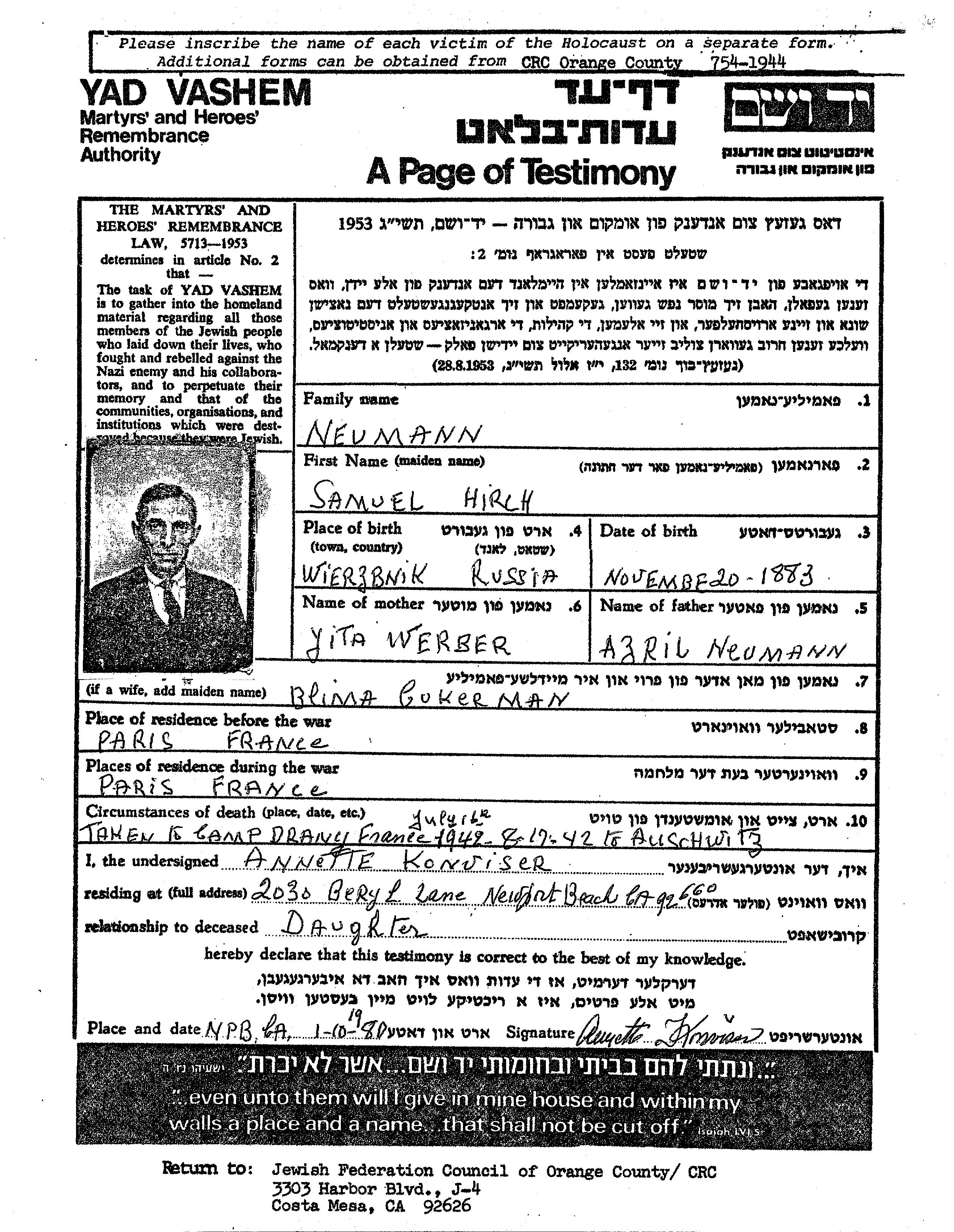 Neuman Samuel 1883 Paris, Frankreich Verfolgtenliste