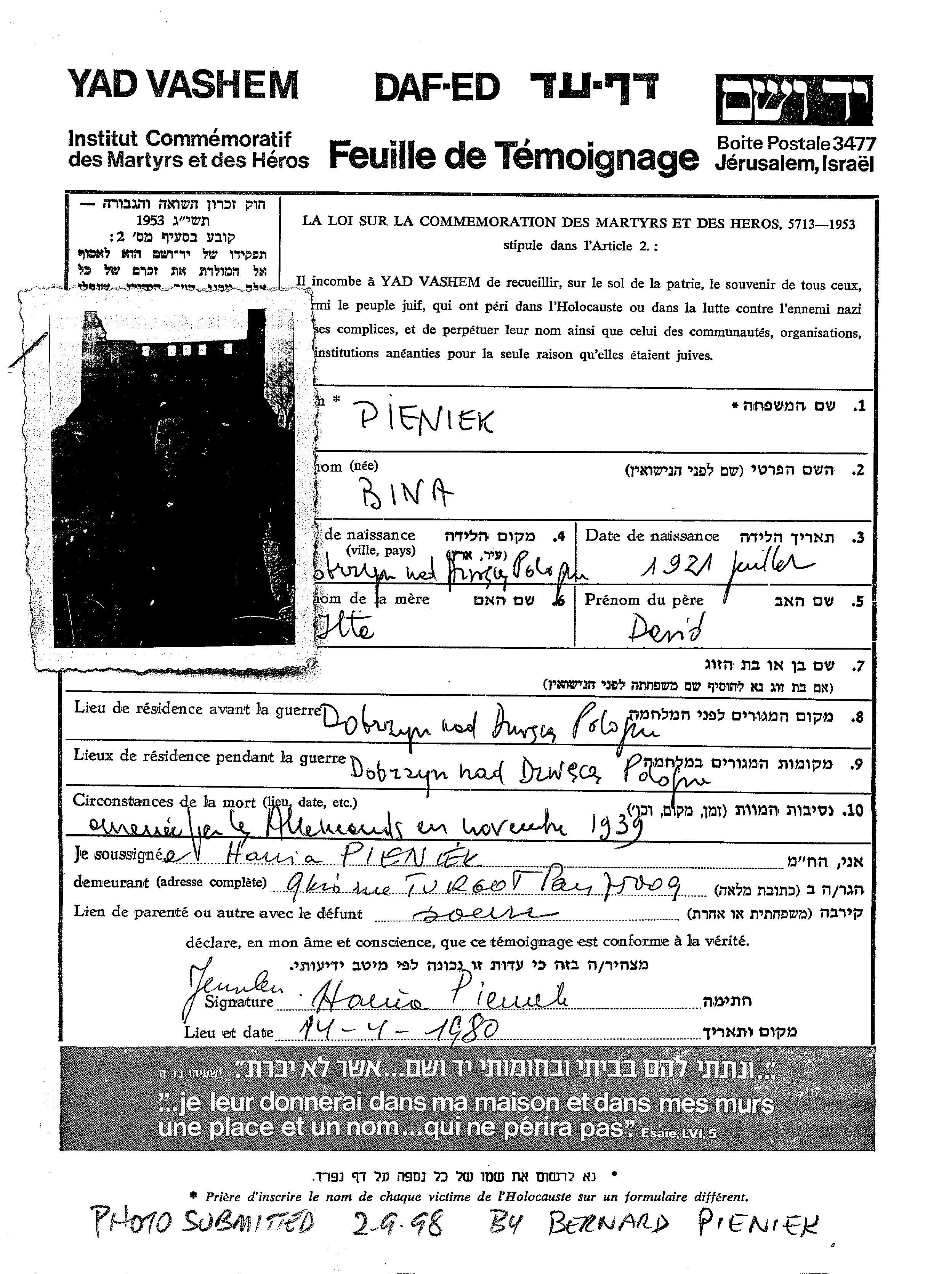 Pieniek | Bina | Dobrzyn Golub, Polen | Verfolgtenliste | |