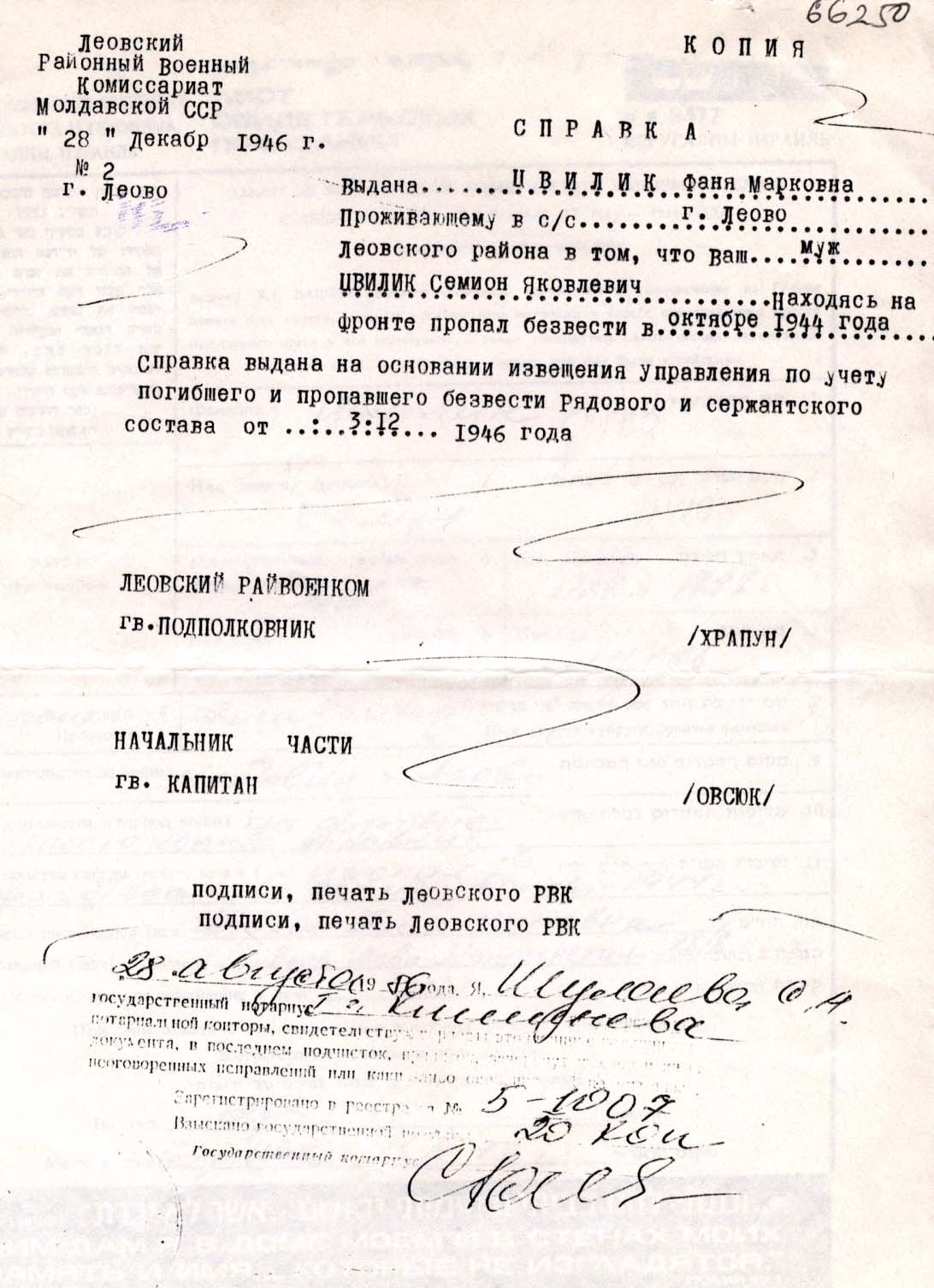 Semion Tzvilik wurde im Jahr 1898 in Leova, Rumänien geboren. Er war Angestellte/-r. Vor dem Zweiten Weltkrieg lebte er in Leova, Rumänien.