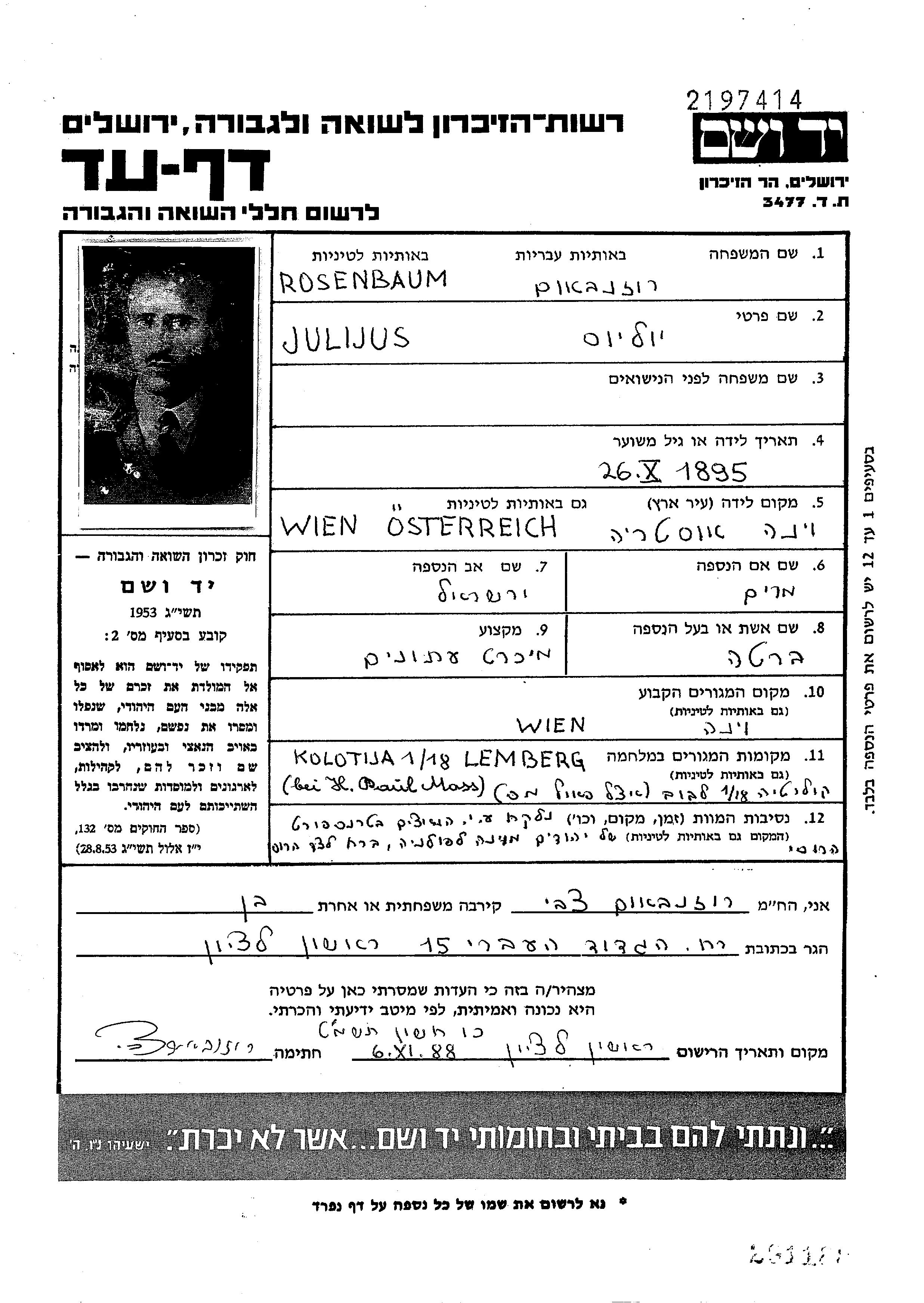Julius Rosenbaum wurde im Jahr 1895 in Wien, Österreich geboren. Vor dem Zweiten Weltkrieg lebte er in Wien, Österreich.