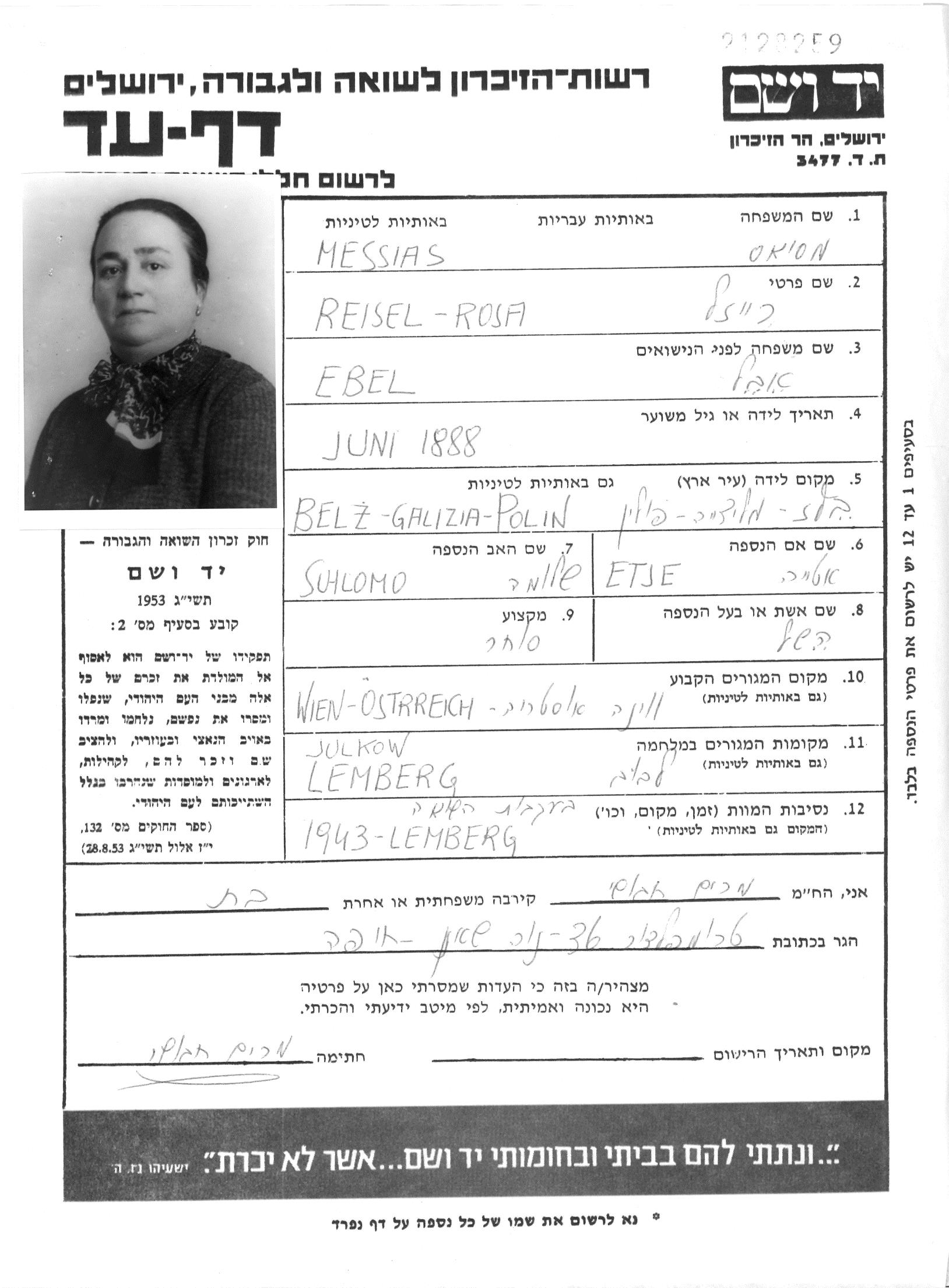 Reisel wurde in der Schoah ermordet. Todesort: Lwow, Polen im Jahr 1943.