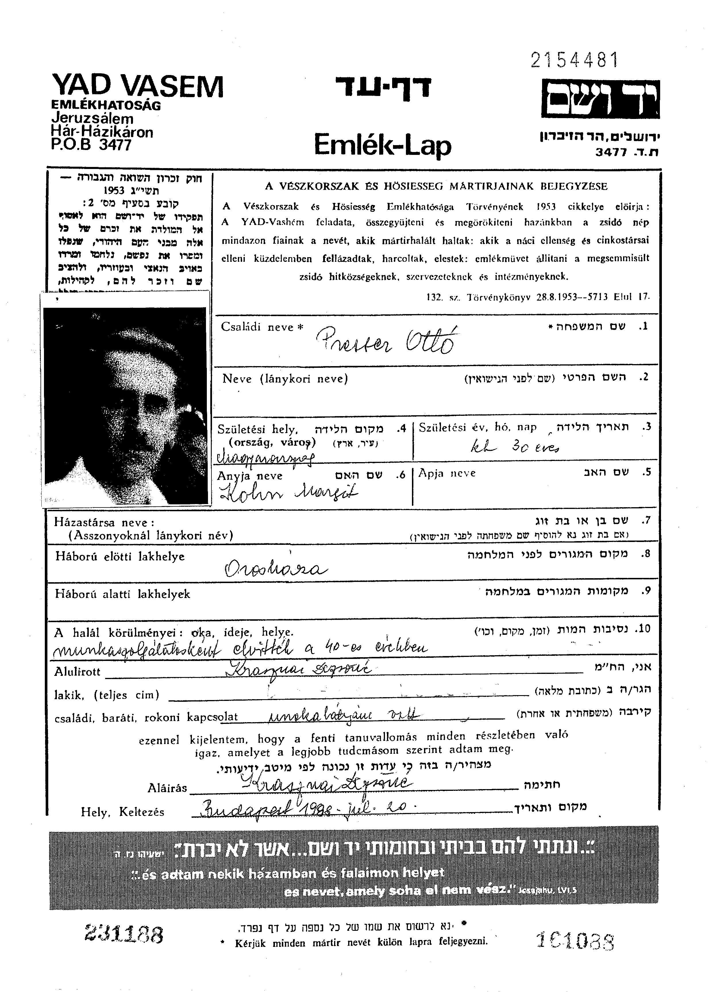 Otto Presser wurde in Ungarn geboren. Vor dem Zweiten Weltkrieg lebte er in Oroshaza, Ungarn.