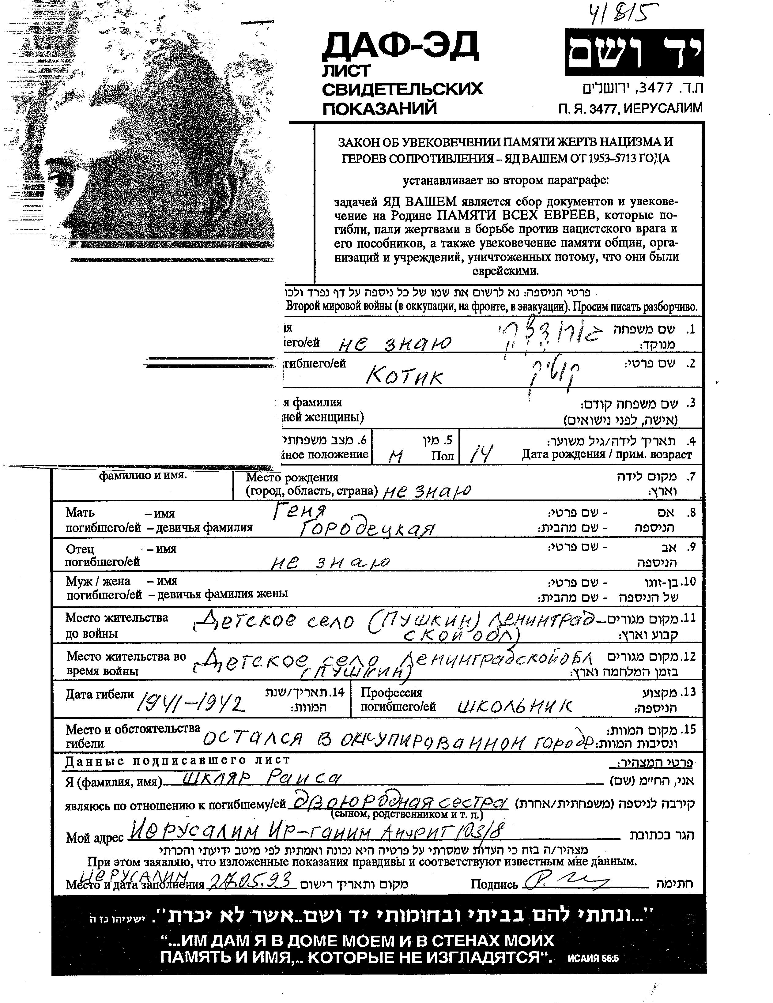 Suche nach einem Todesjahr im Zeitraum der Holocaust: 1933 bis 1945. Bitte wählen Sie 'Exakt' im Auswahlmenü, um nur nach einem einzelnen Jahr zu suchen, alternativ können Sie die flexibleren Optionen '+/- 2 Jahre' oder '+/- 5 Jahre' wählen.