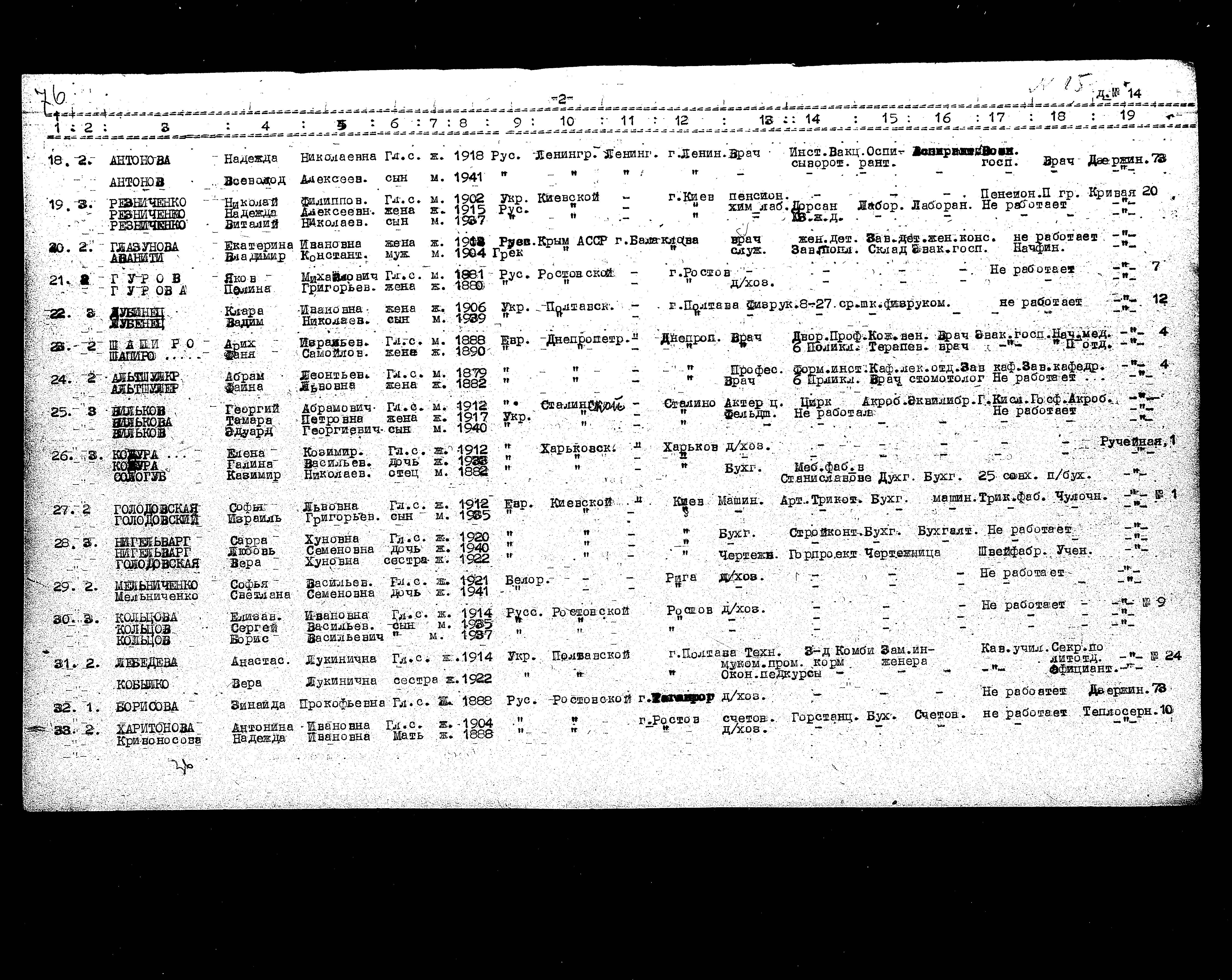 Faina Fanya Shapiro, geb. Badylks wurde im Jahr 1890 in Bialystok, Polen geboren. Sie war Arzt/ärztin. Vor dem Zweiten Weltkrieg lebte sie in Dnepropetrovsk, Ukraine (UdSSR).