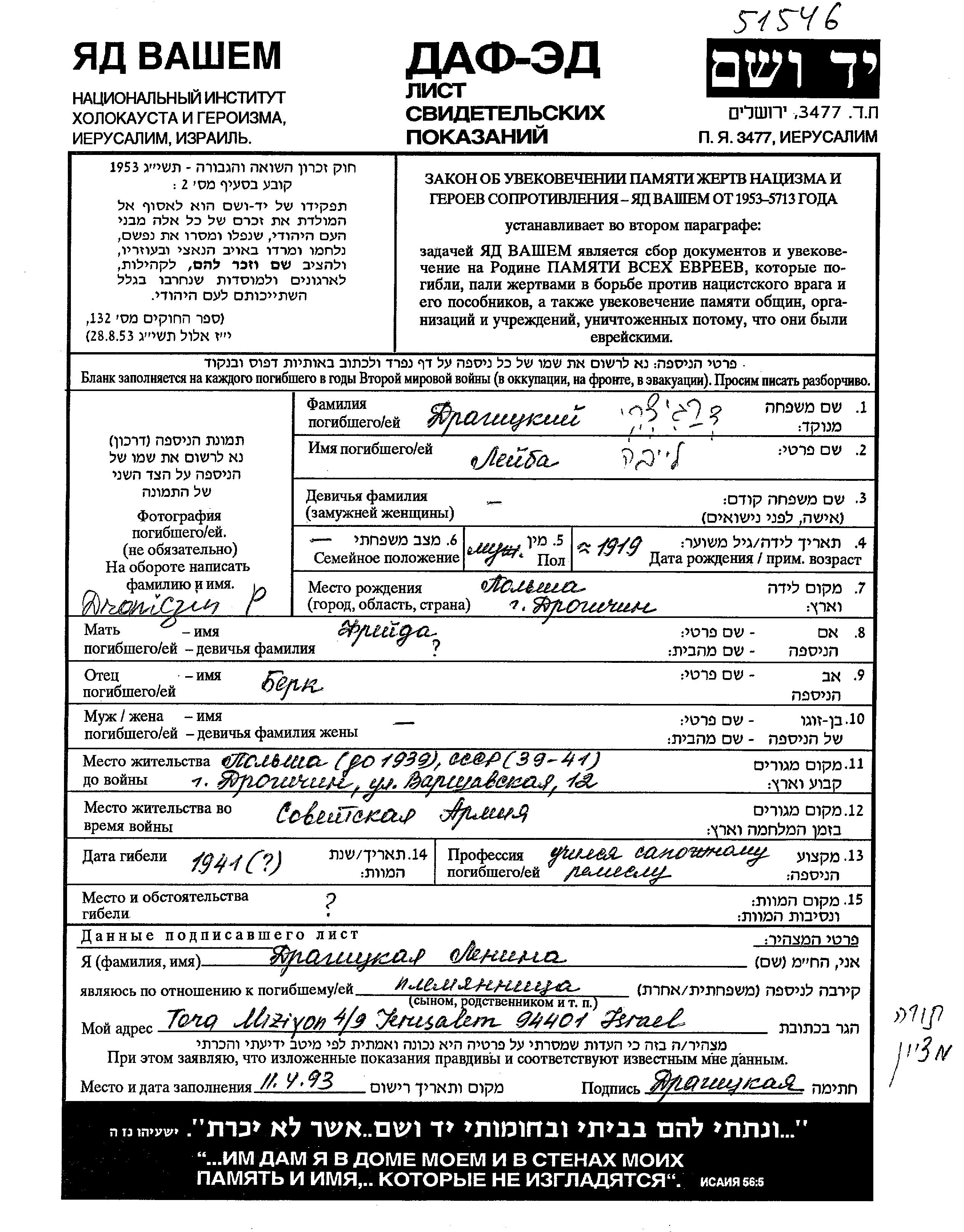 Leiba im Militärdienst umgekommen. Todesort: unbekannt im Jahr 1941.