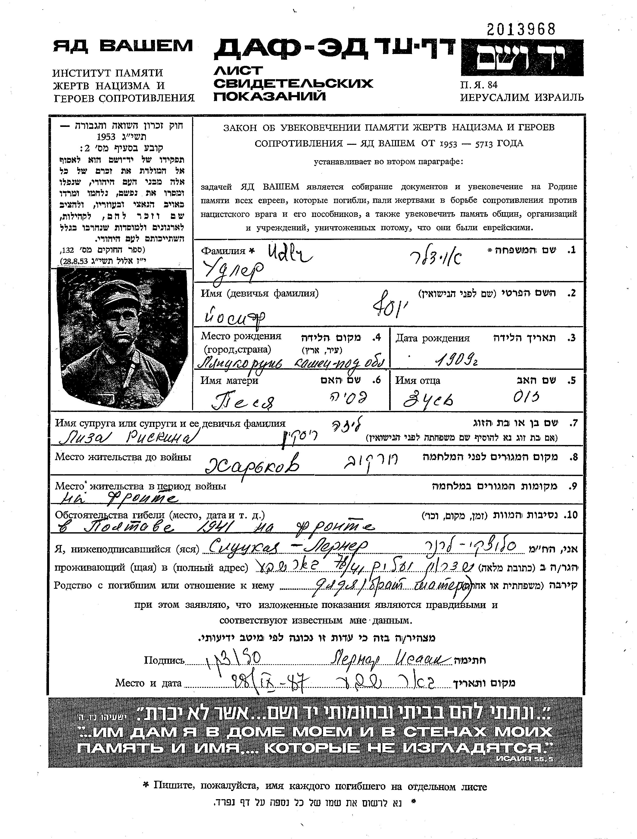 Udler | Yosif | 1909 | Kharkov, Ukraine (UdSSR) | Gedenkblatt |