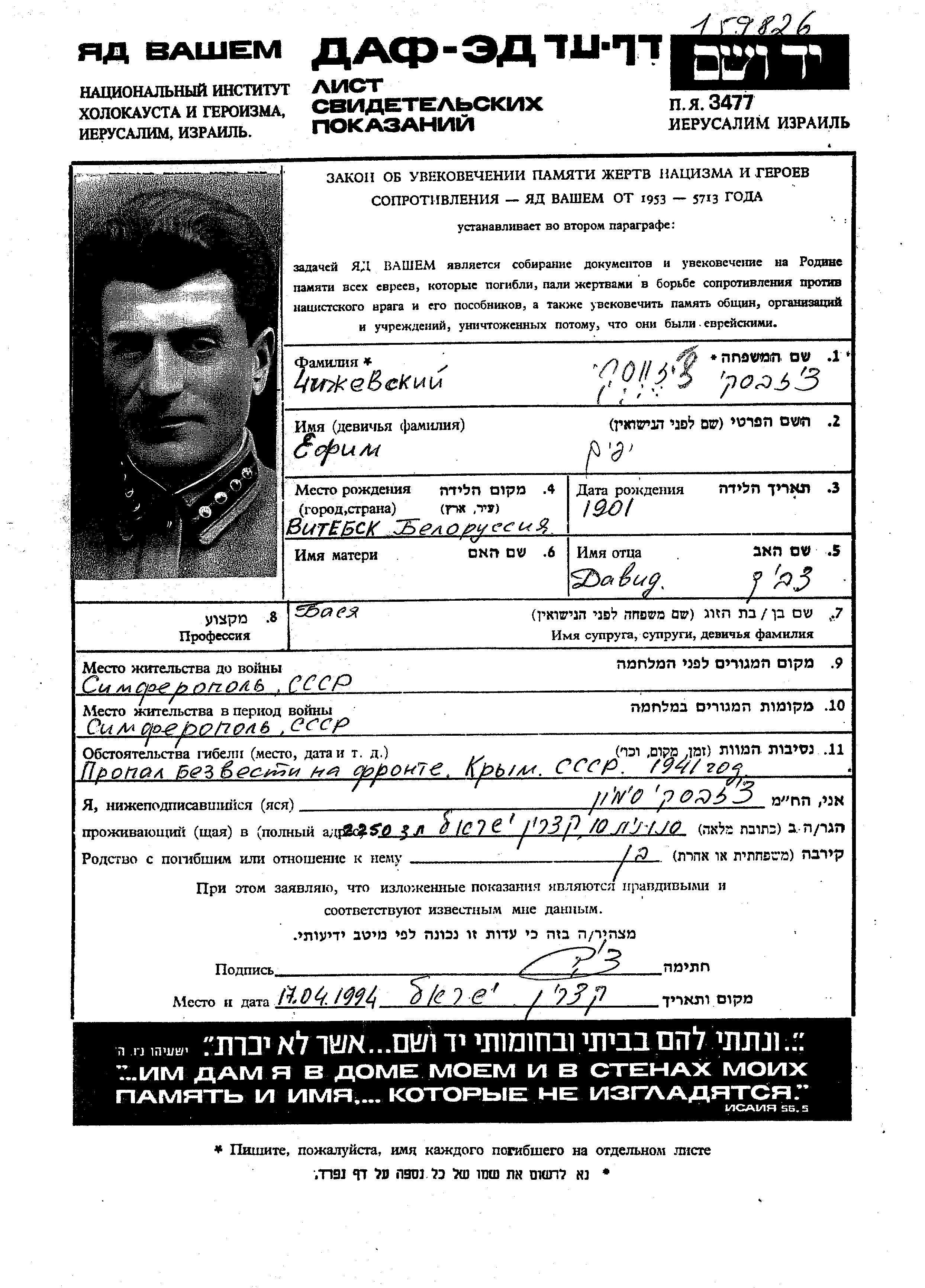 Yefim wurde in der Schoah ermordet. Todesort: Krym ASSR, Russland (UdSSR) im Jahr 1941.