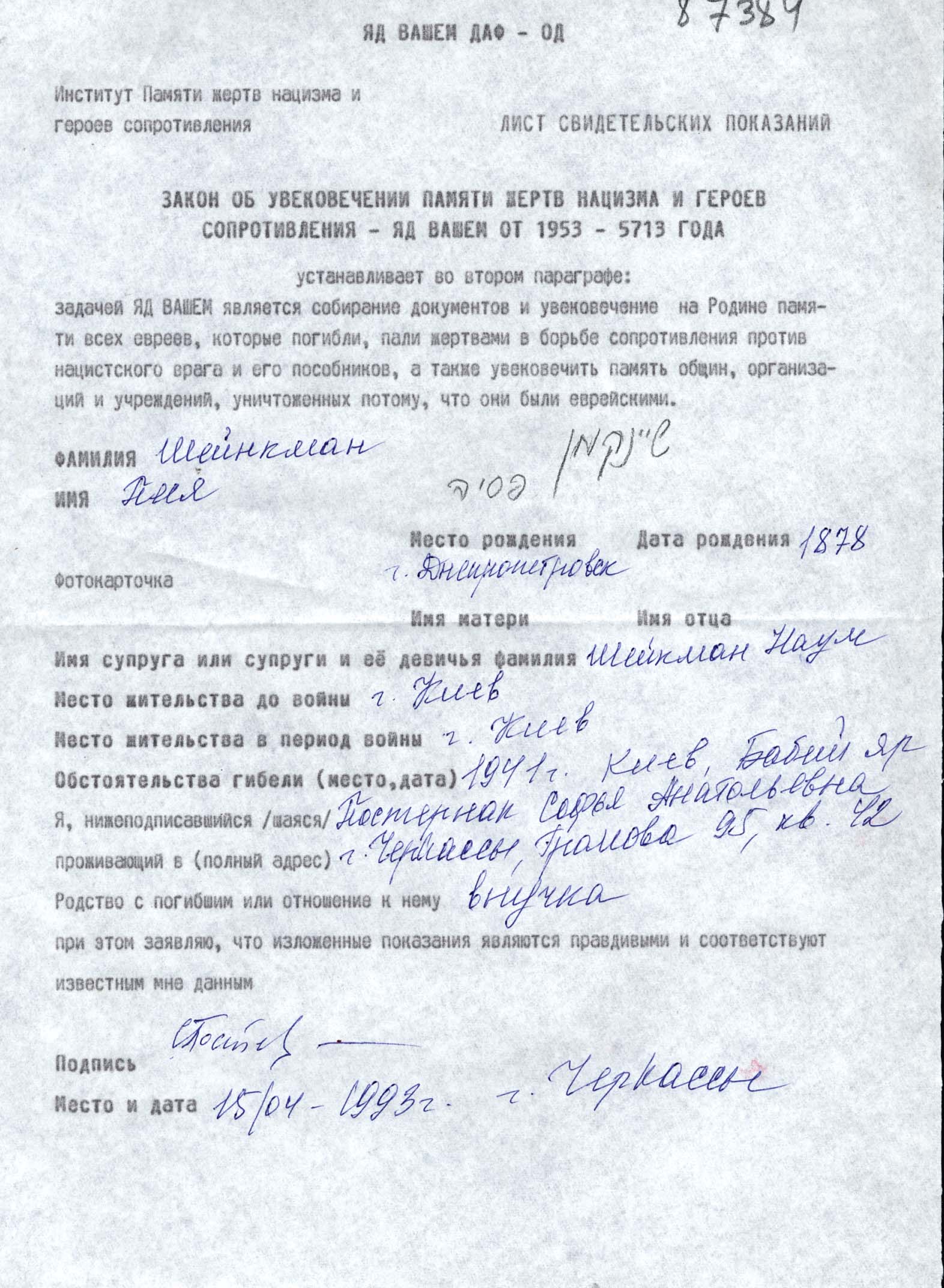 Sheynkman Pesia 1878 Kiyev, Ukraine (UdSSR) Gedenkblatt