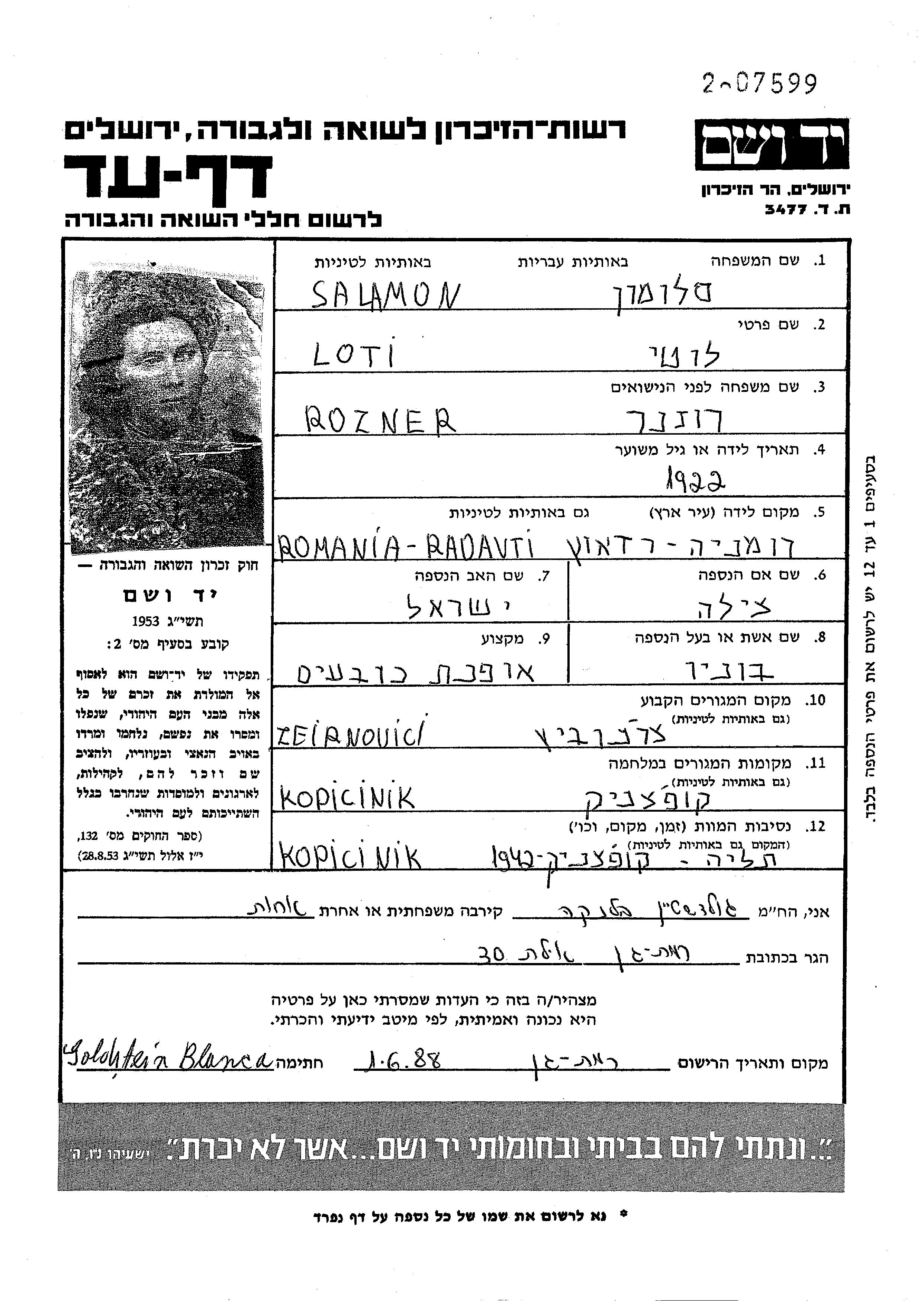 Loti wurde in der Schoah ermordet. Todesort: Kopyczynce, Polen im Jahr 1942.