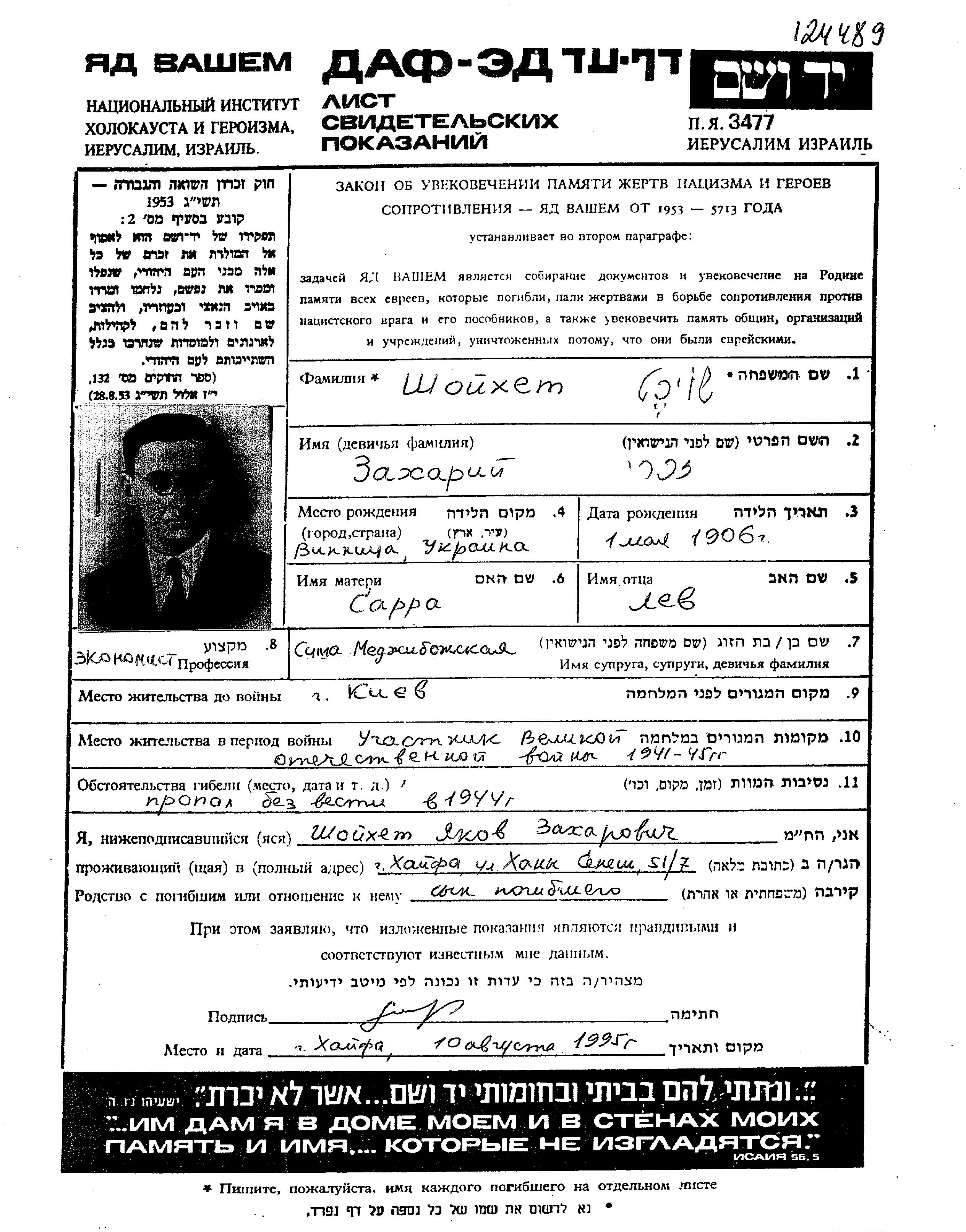 Shoikhet | Zakharia | 1906 | Kiyev, Ukraine (UdSSR) | Gedenkblatt |