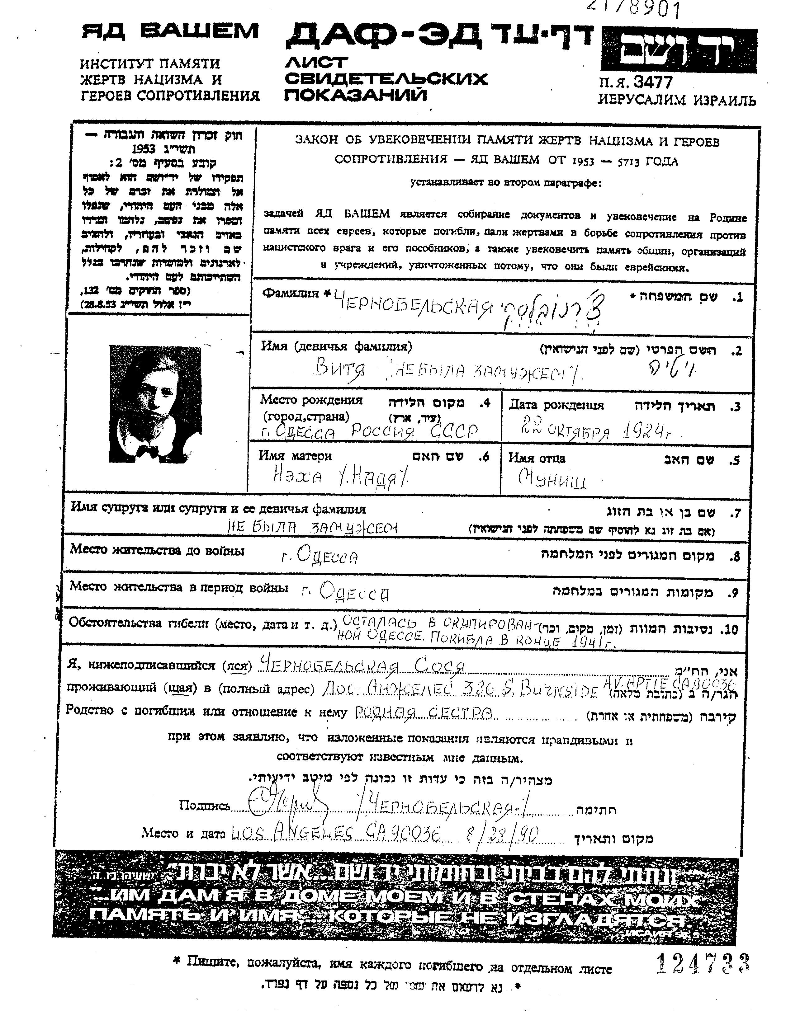 Chernobelski | Vitya Vitia | 1924 | Odessa, Ukraine (UdSSR) | Gedenkblatt |