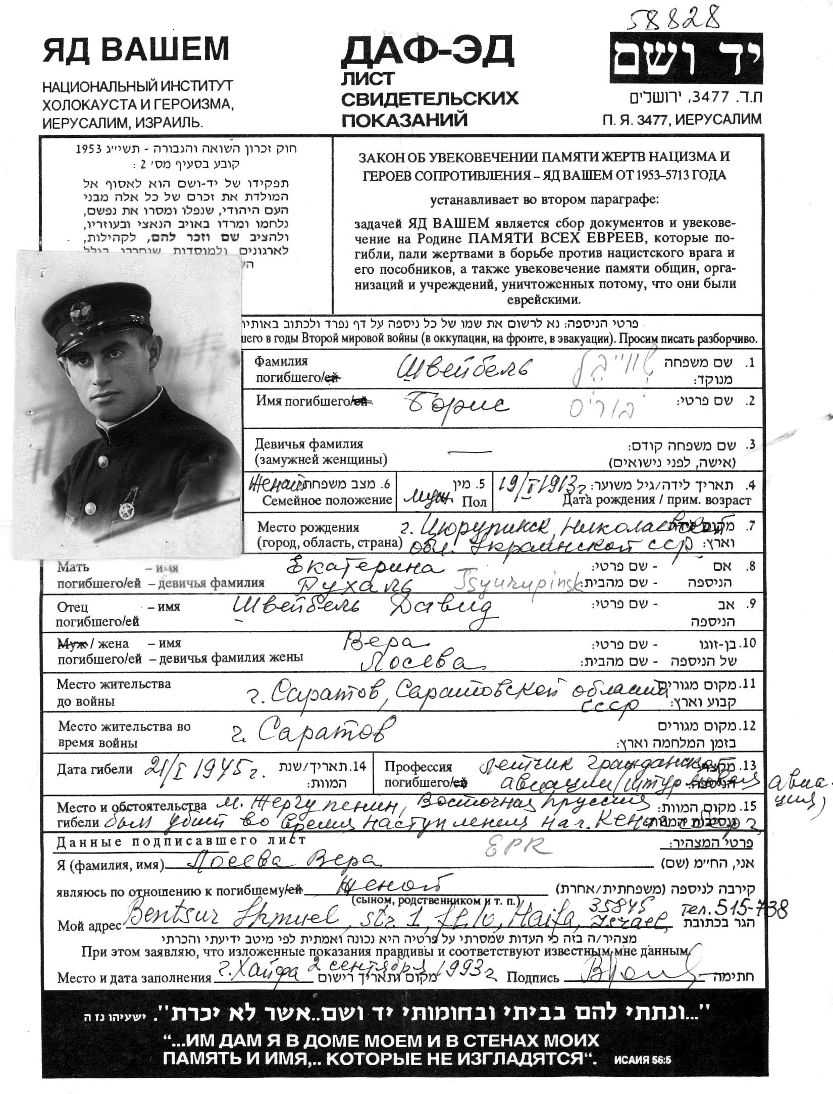 Shveibel Boris 1913 Saratov, Russland (UdSSR) Gedenkblatt