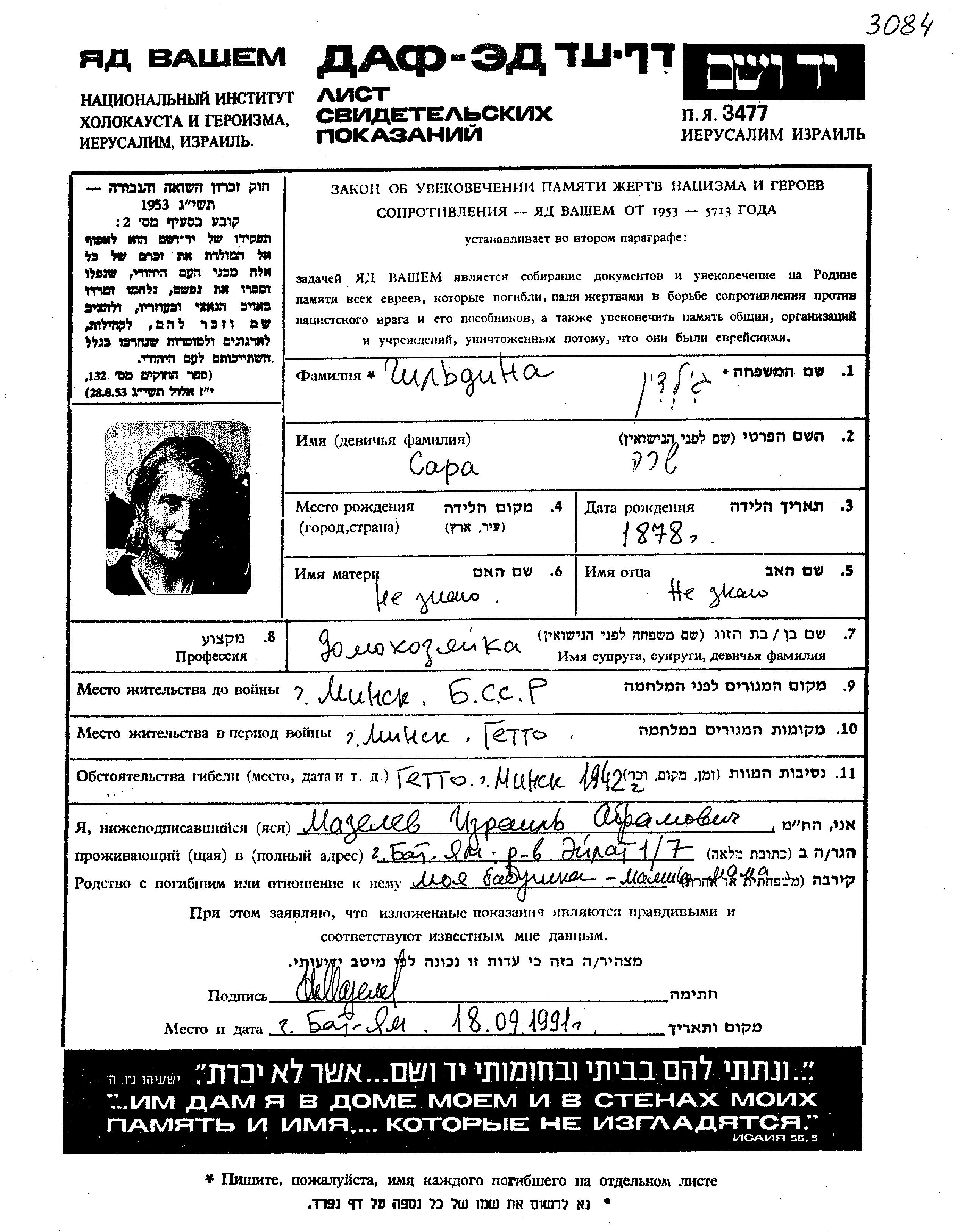 Gildin | Sara | 1878 | Minsk, Weißrussland (UdSSR) | Photos |