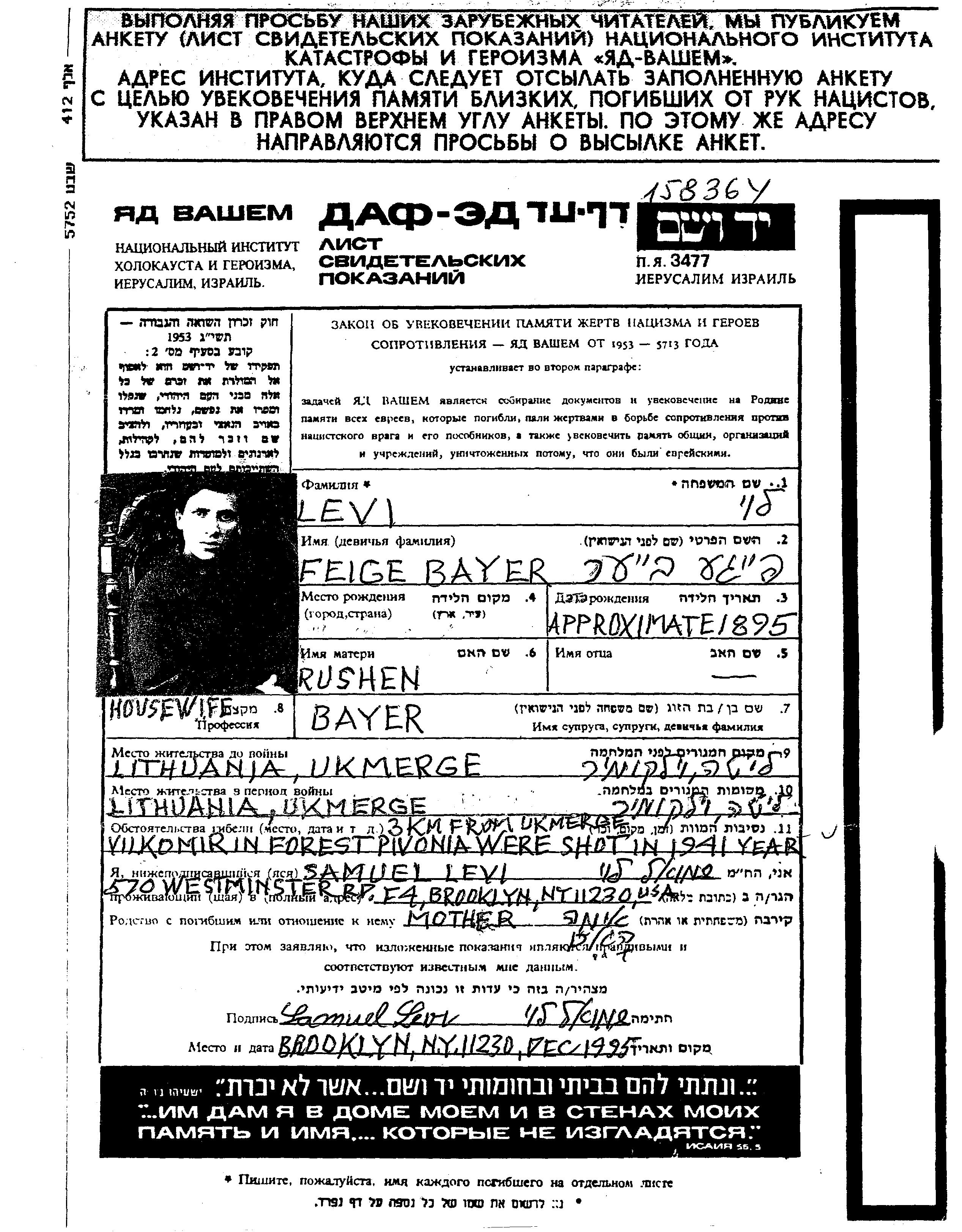 Levi | Feiga | 1895 | Ukmerge, Litauen | Gedenkblatt |