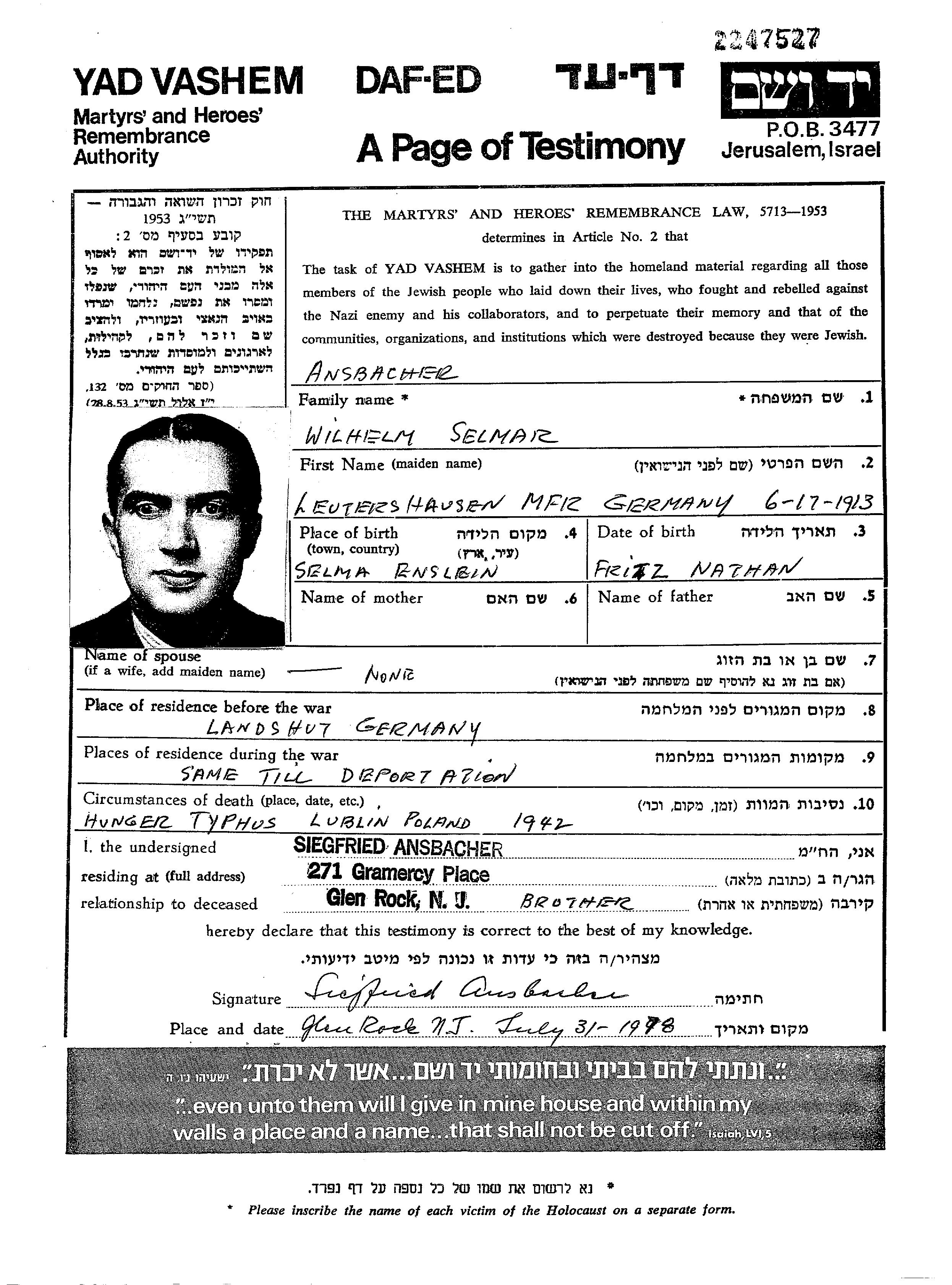 Ansbacher | Wilhelm Selmar | 1913 | Landshut, Deutsches Reich | Photos |