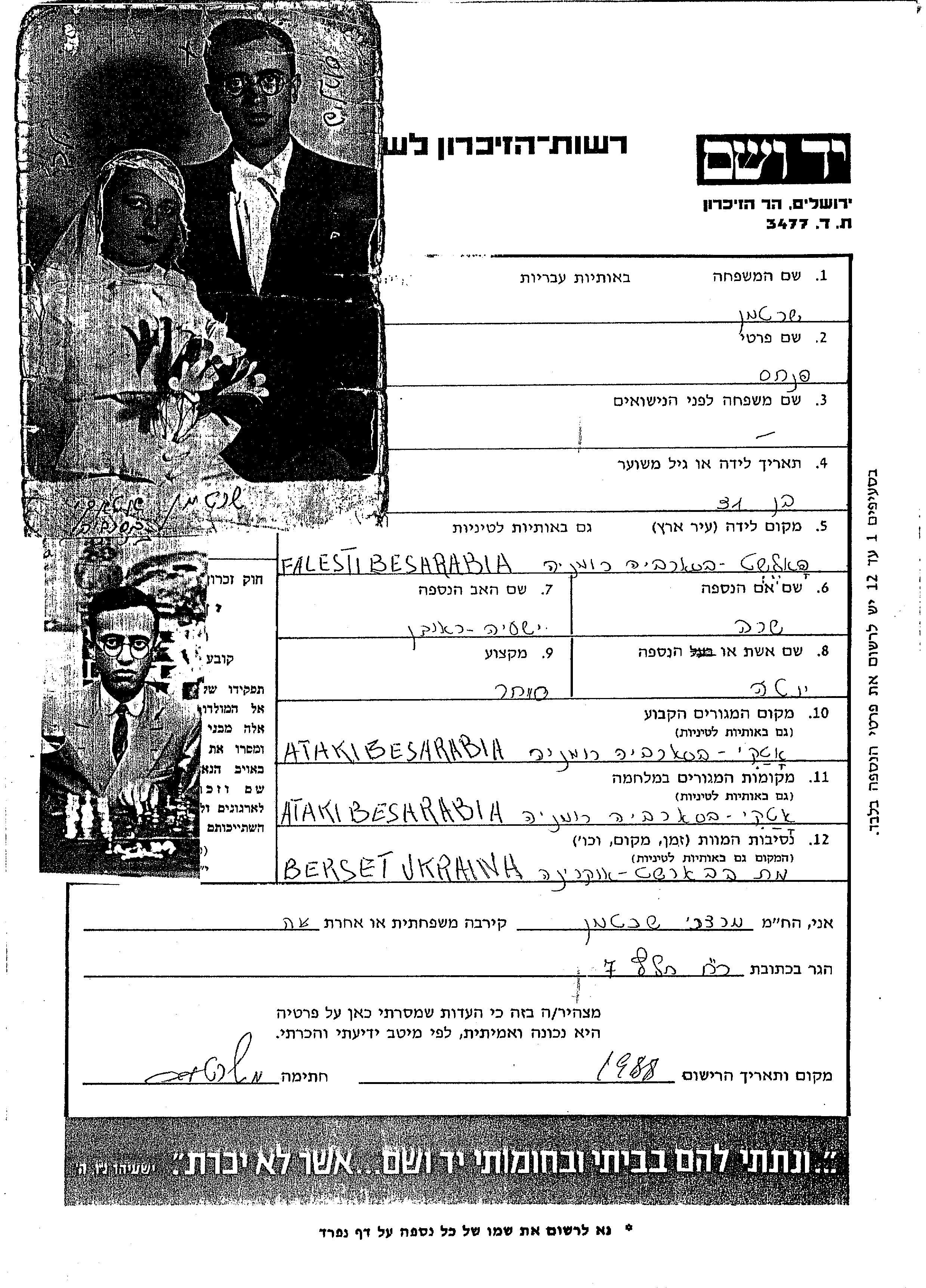 Pinkhas Shekhtman wurde in Falesti, Rumänien geboren. Er war Kaufmann/-frau. Vor dem Zweiten Weltkrieg lebte er in Ataki, Rumänien.