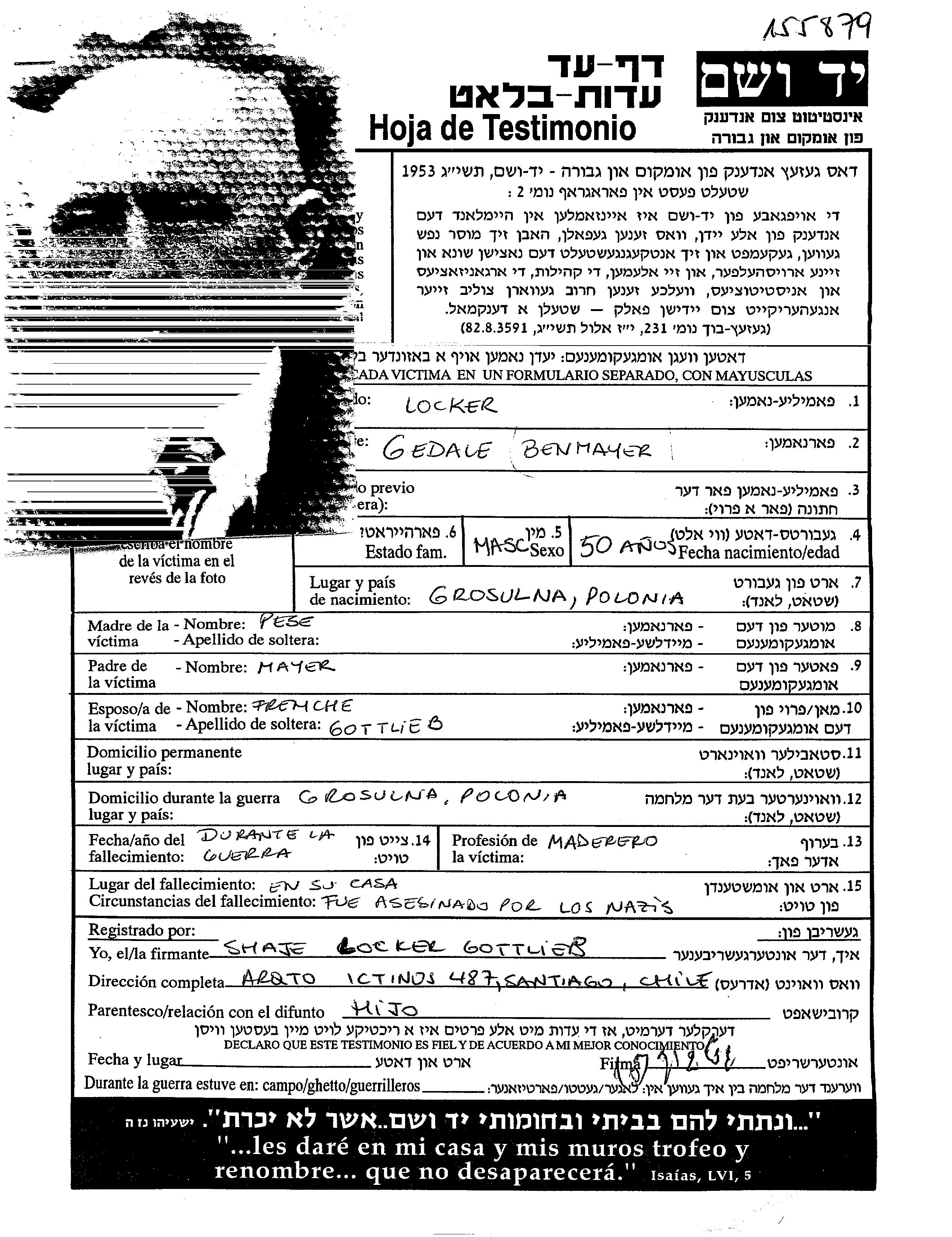 Gedale Locker wurde in Rosulna, Polen geboren. Er war Getreidehändler/-in. Vor dem Zweiten Weltkrieg lebte er in Rosulna, Polen.