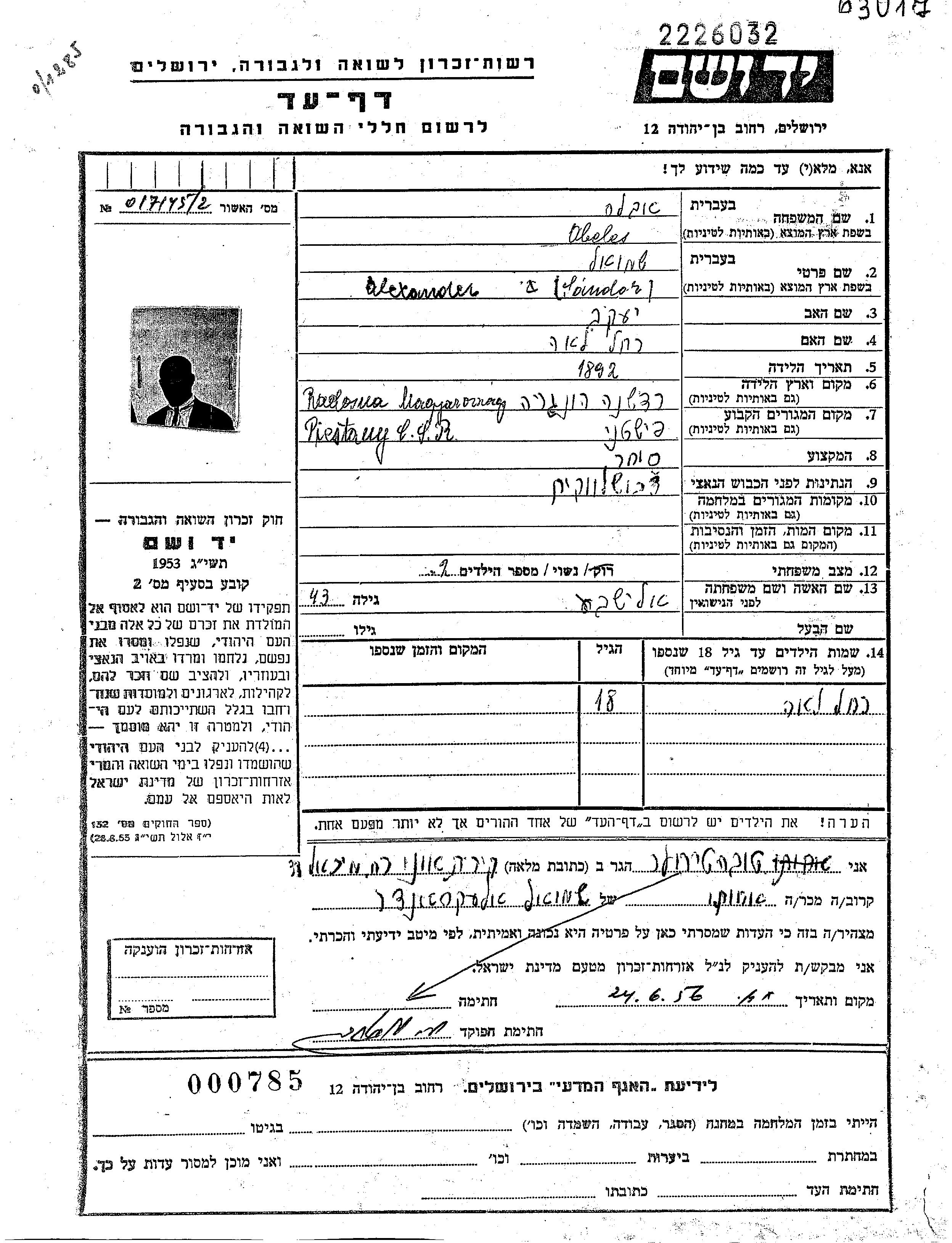 Alexander Shmuel wurde in der Schoah ermordet. Todesort: unbekannter Ort.