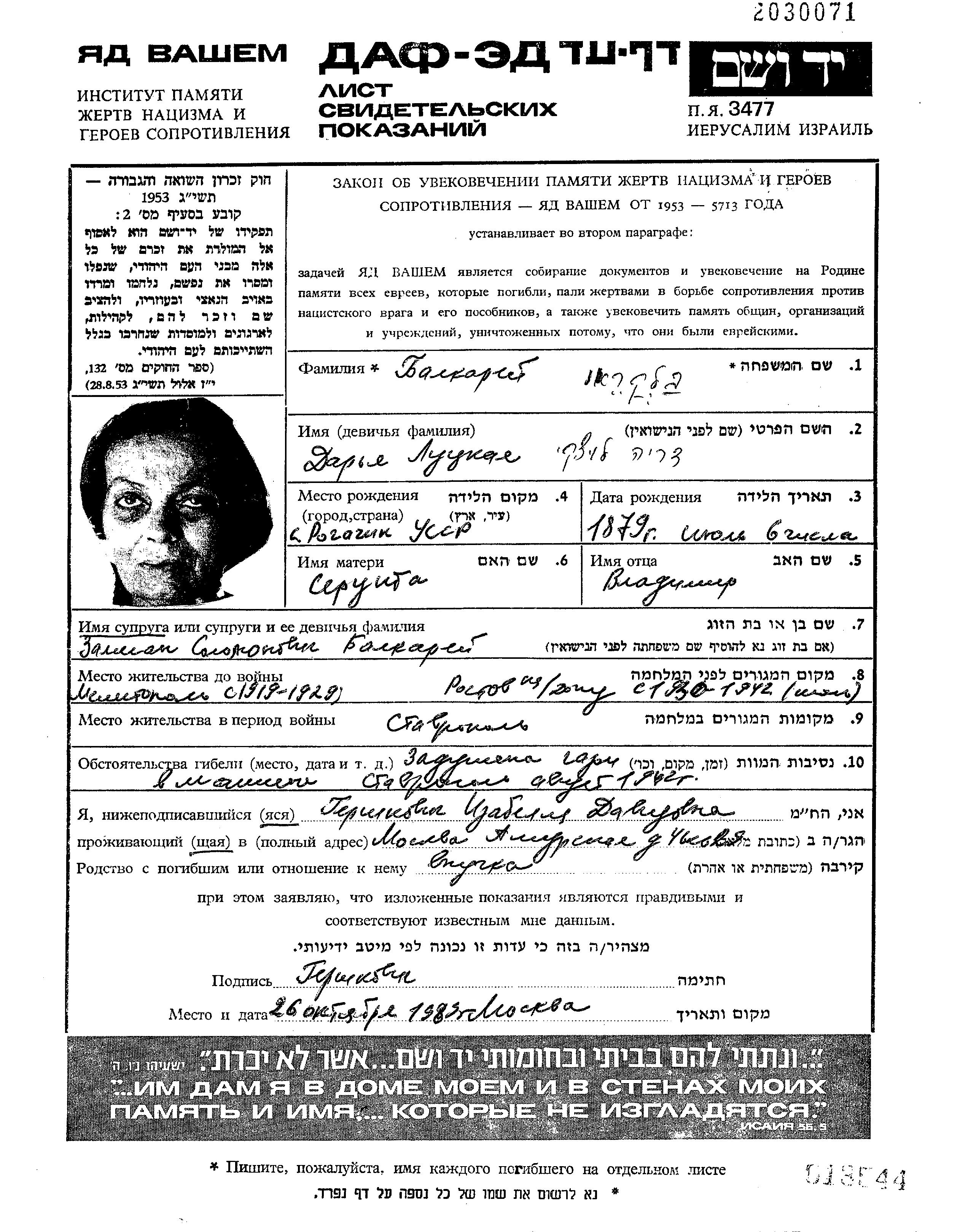 | Balkarei | Daria | 1879 | Rostov na Donu, Russland (UdSSR) | Gedenkblatt |