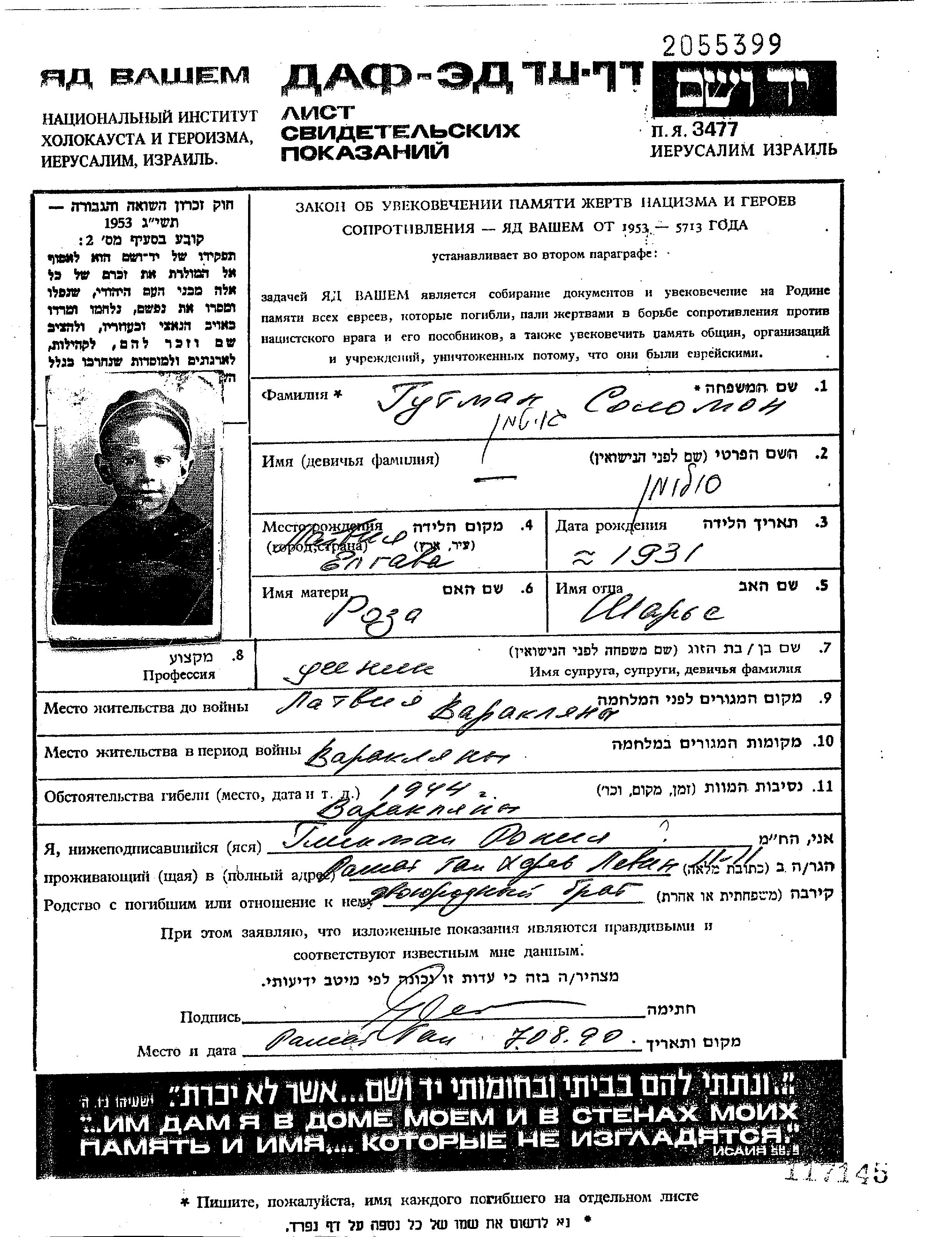 Solomon wurde in der Schoah ermordet. Todesort: Varaklani, Lettland im Jahr 1944.