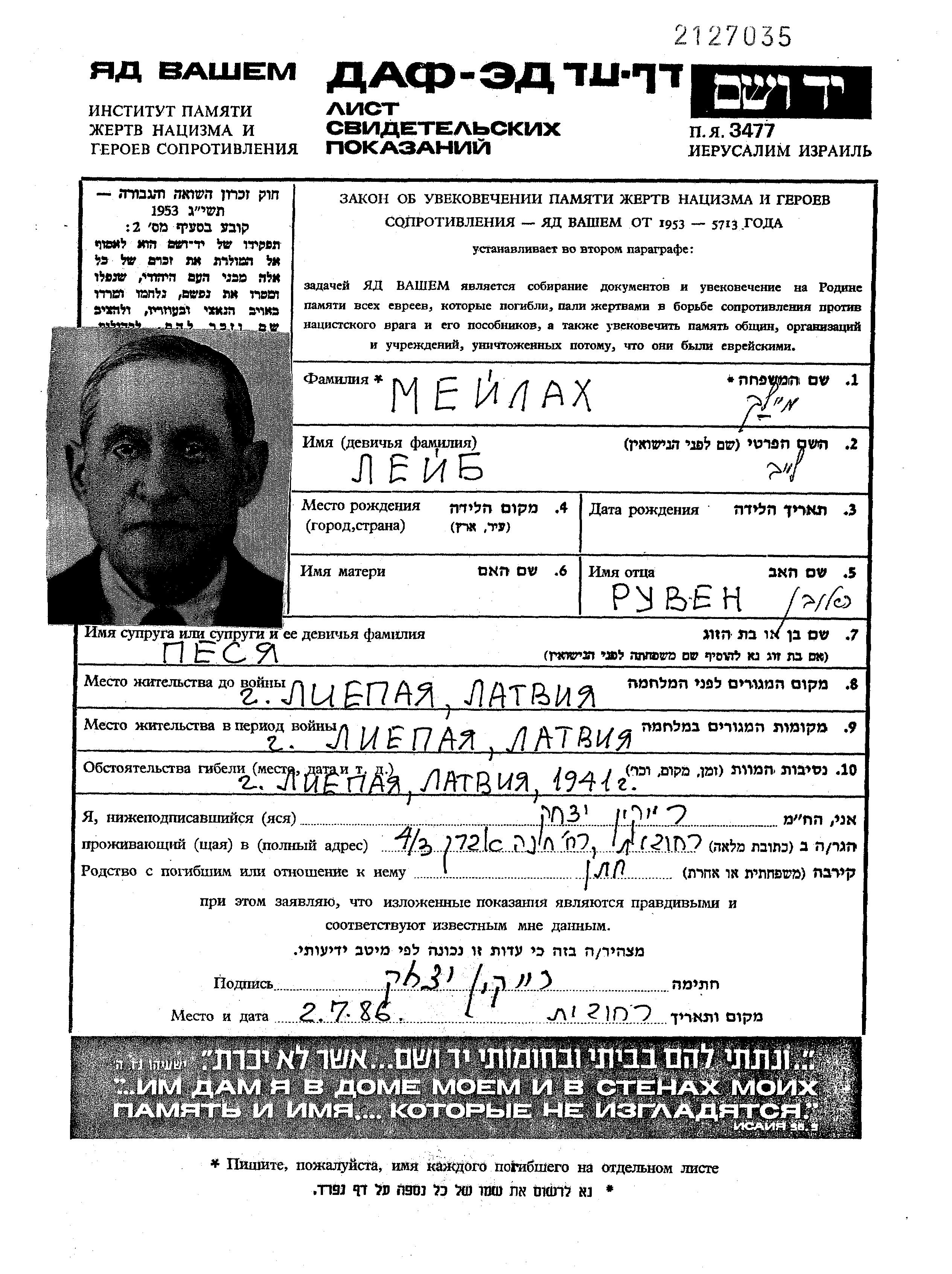 Meilakh Leib Liepaja, Lettland Gedenkblatt