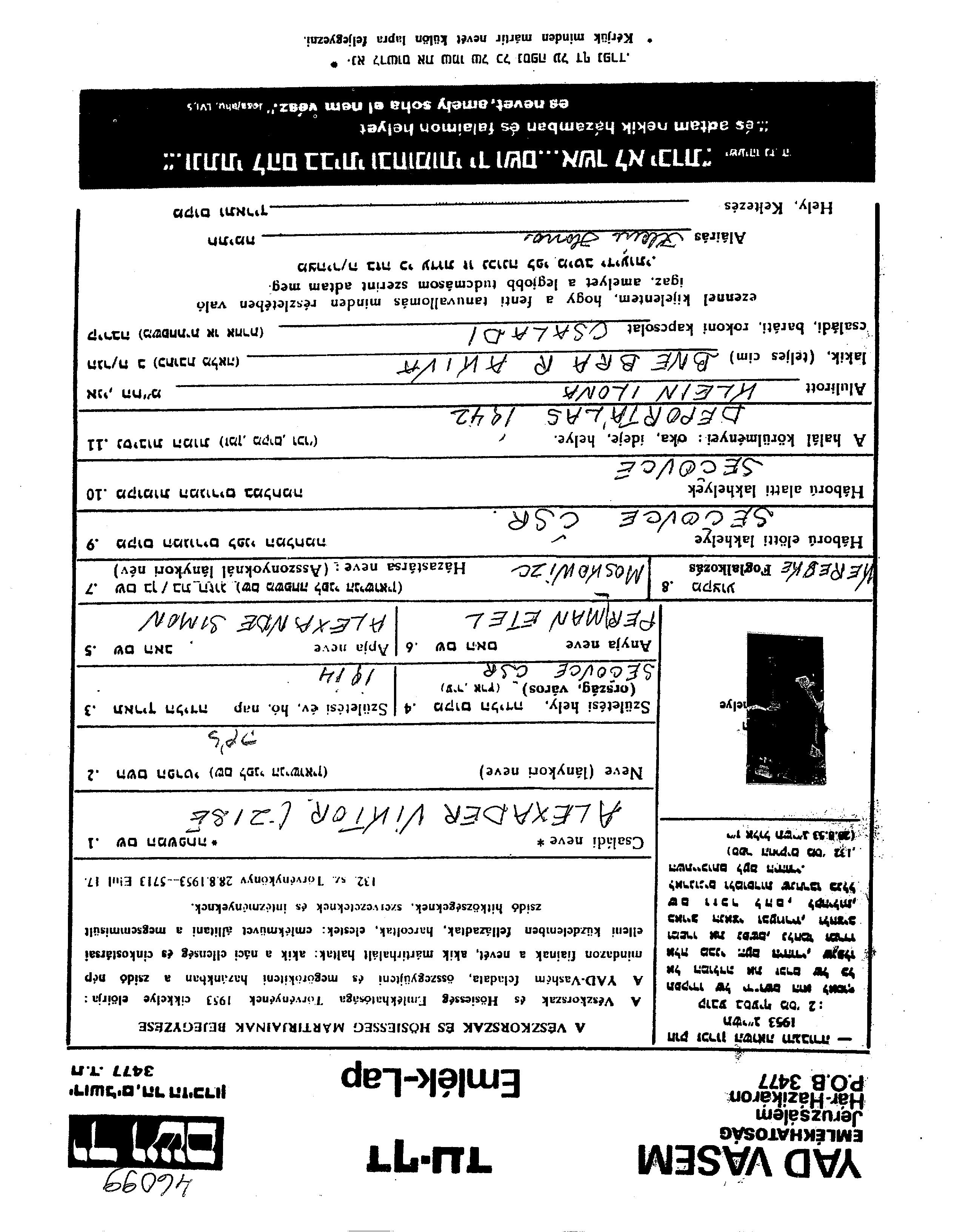 Zise Viktor Zisa Alexander wurde im Jahr 1914 in Secovce, Tschechoslowakei geboren. Er war Kaufmann/-frau. Vor dem Zweiten Weltkrieg lebte er in Secovce, Tschechoslowakei. Zise Viktor Zisa wurde in der Schoah ermordet. Todesort: unbekannter Ort im Jahr 1942.