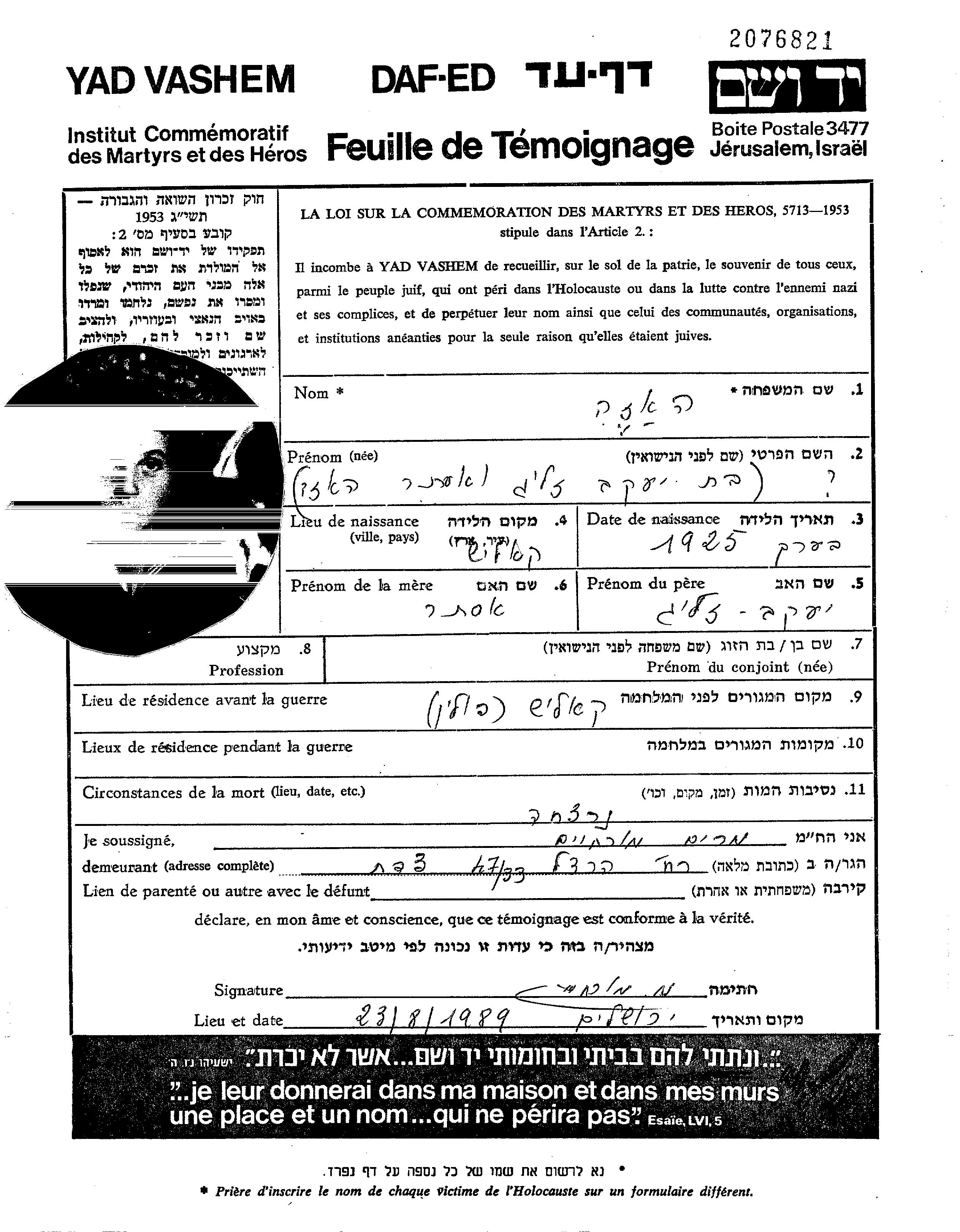 Vorname unbekannt Haze wurde in Kalisz, Polen geboren. Vor dem Zweiten Weltkrieg lebte sie in Kalisz, Polen.